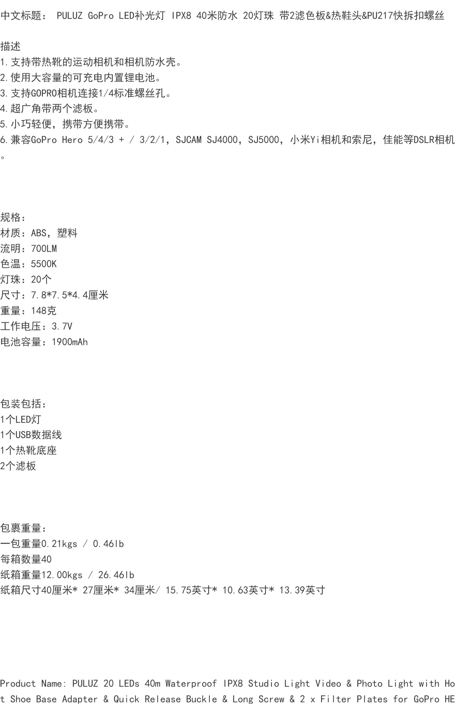 Suitable for iPhone, Apple diving case, fill light, GoPro hero camera, underwater shooting, waterproof case, photography light