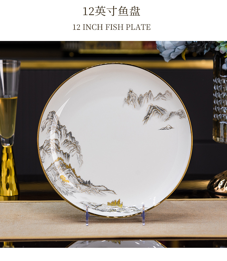 ink painting 12-inch fish dish