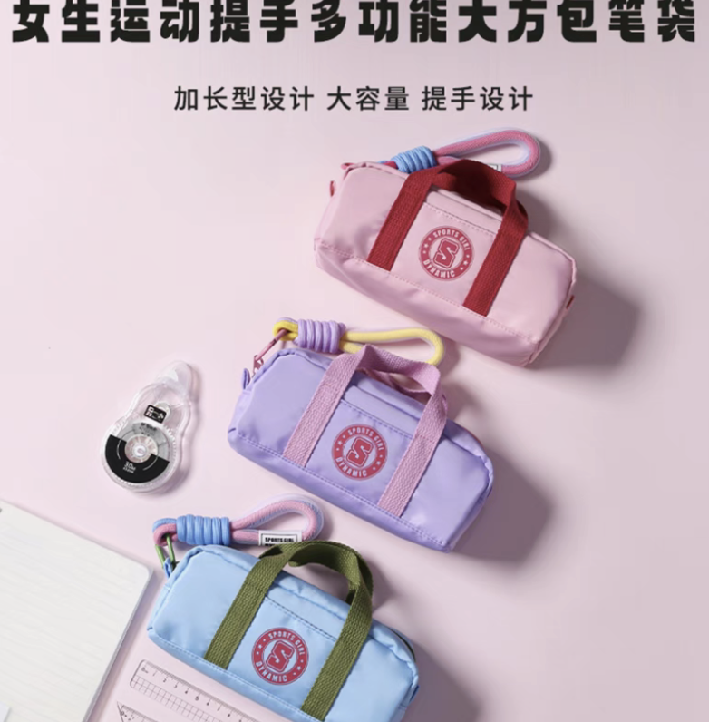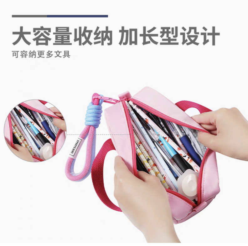 girls' exercise portable multi-functional large square bag pencil case lengthened large capacity pencil case 中文版