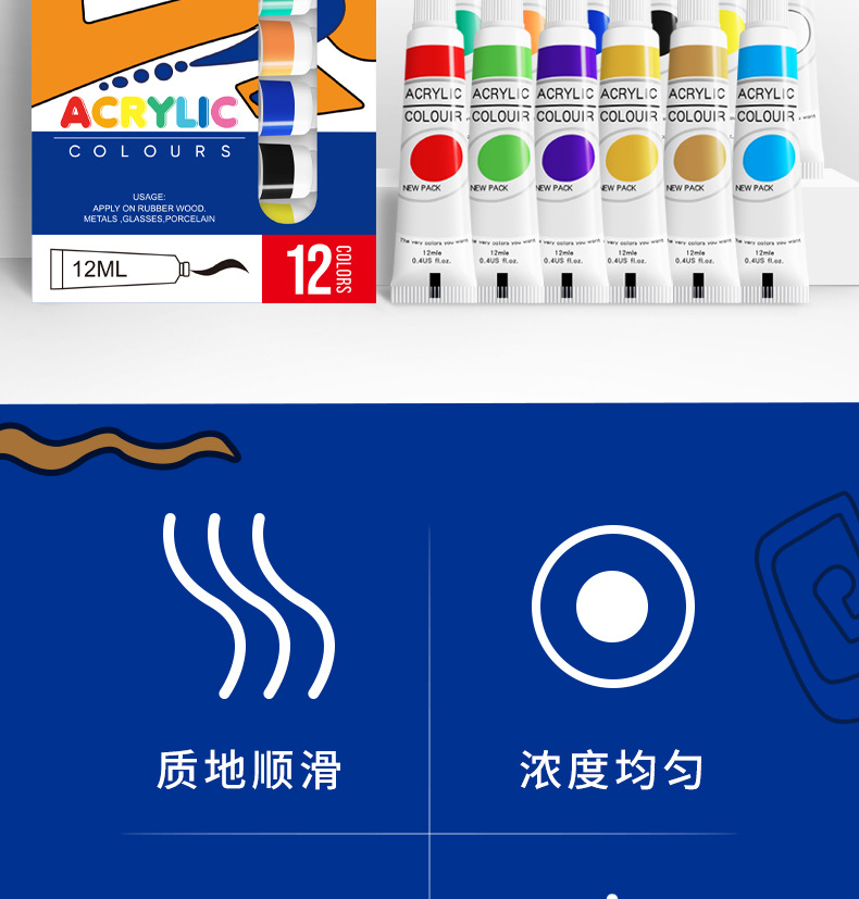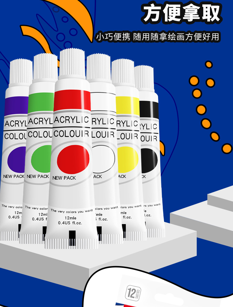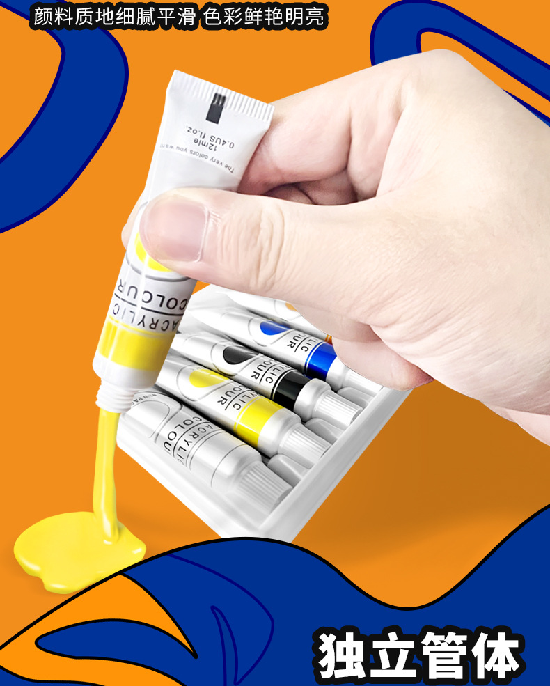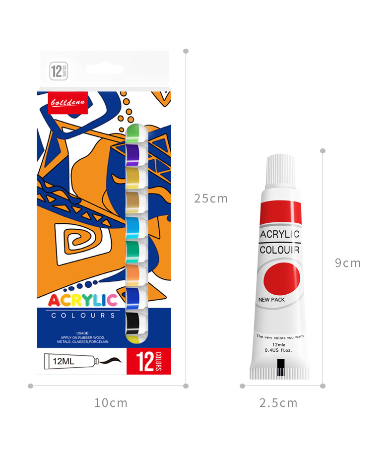 12 color aluminum plastic tube acrylic paint