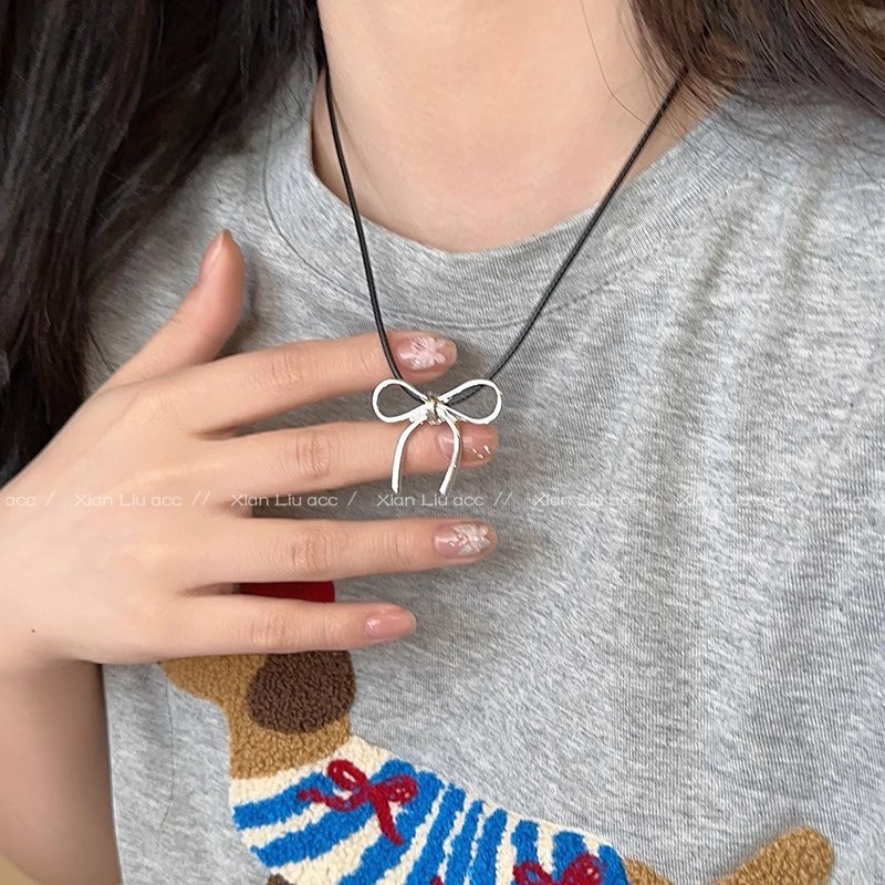 pu chain bow necklace
