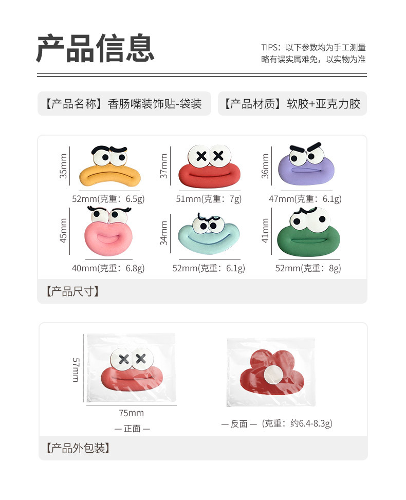 Product material: soft rubber + magnet + acrylic adhesive