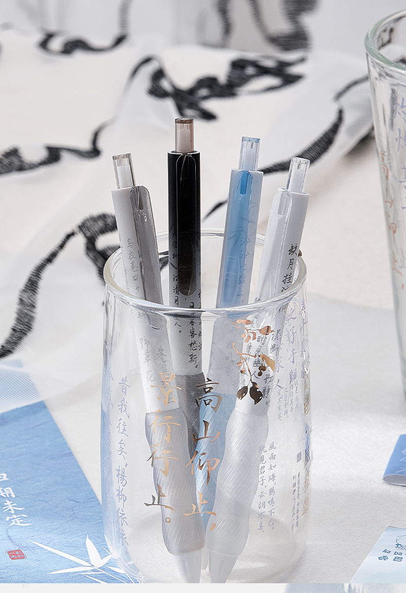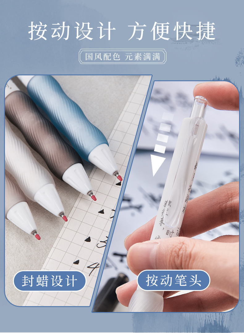 good-looking national style series push design gel pen st nib 0.5mm black quick-drying jelly bouncy soft grip 中文版