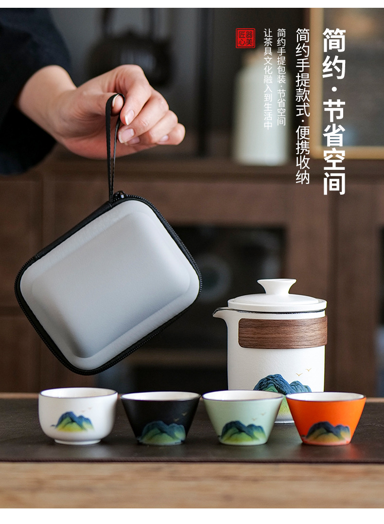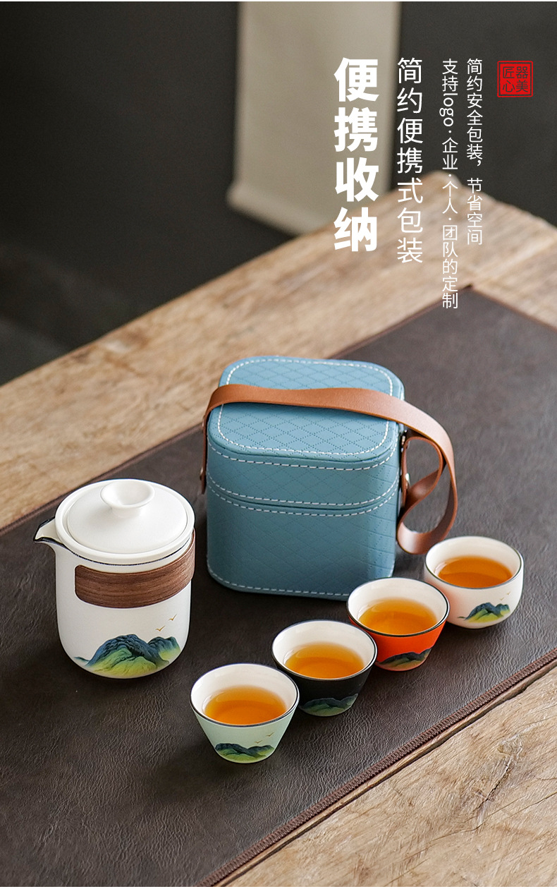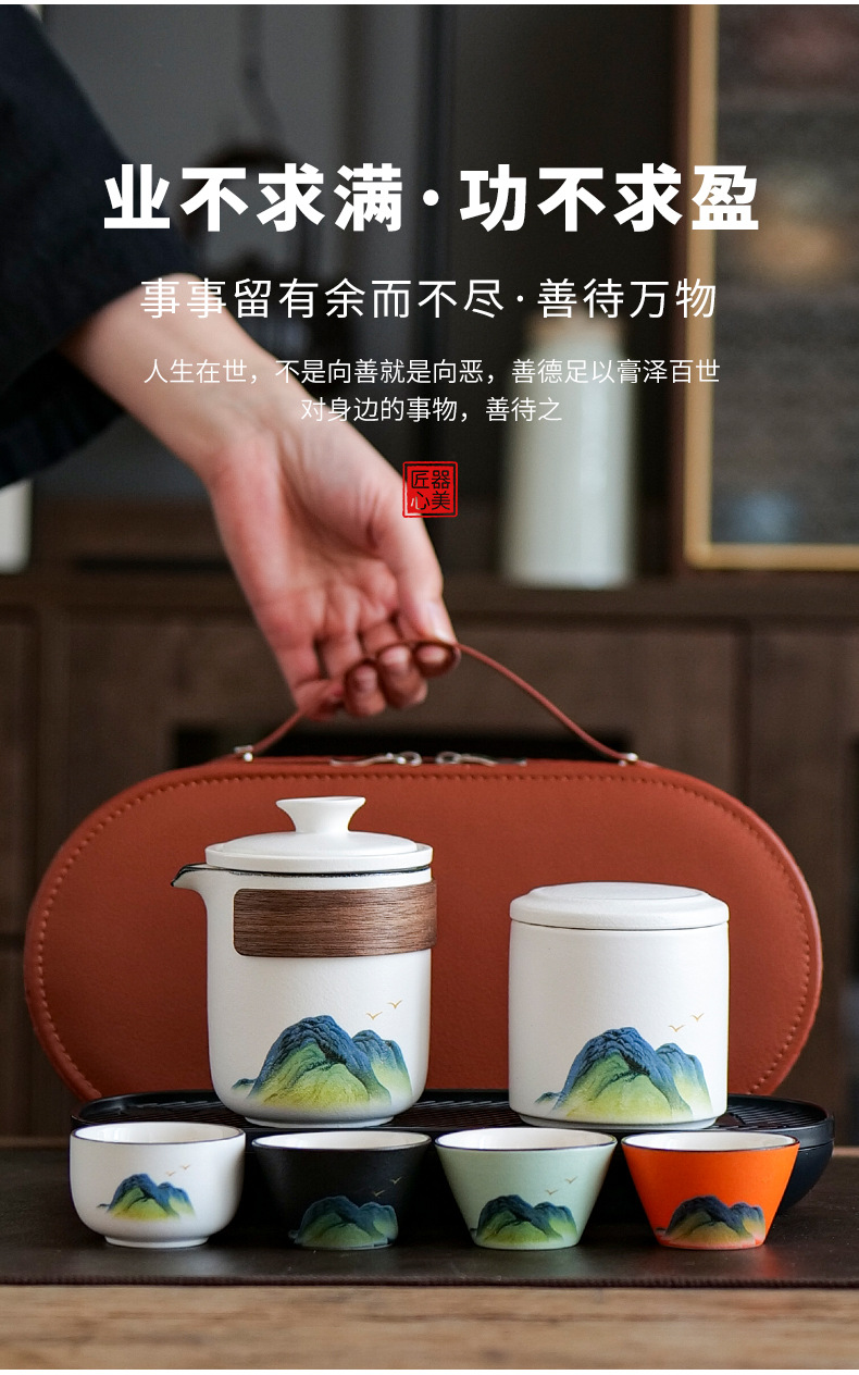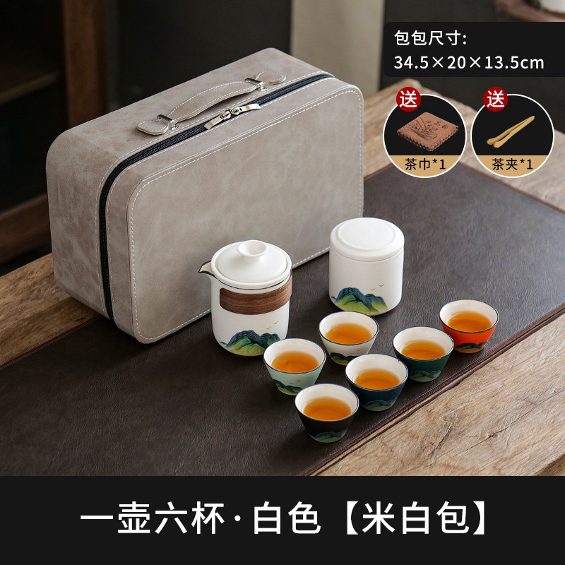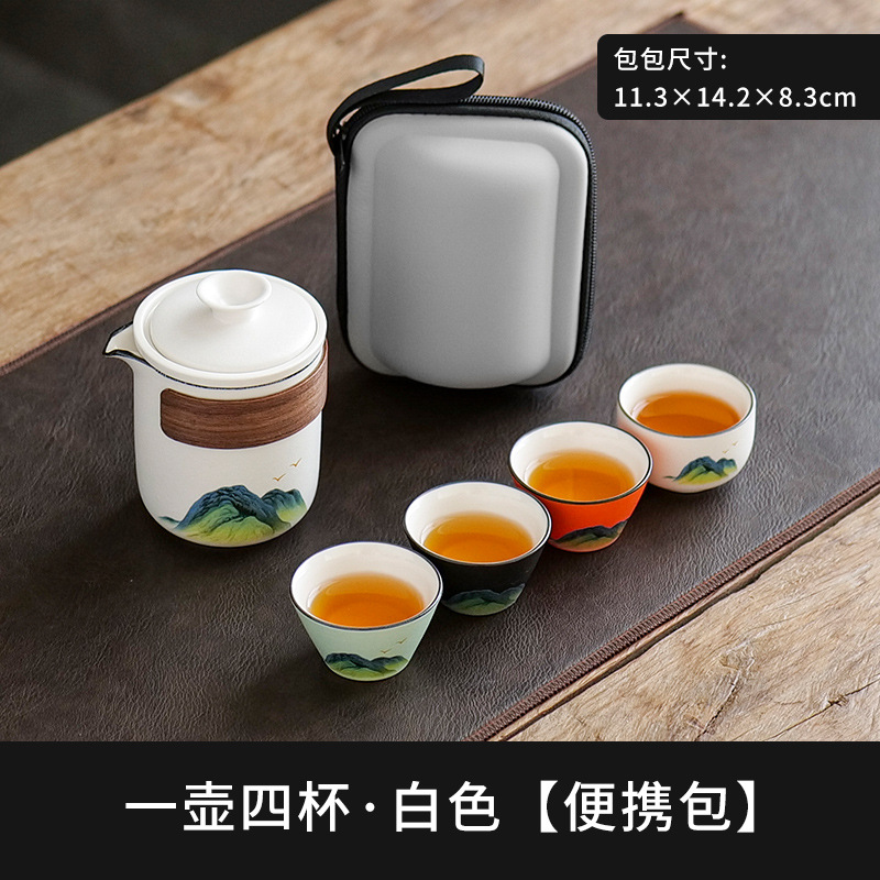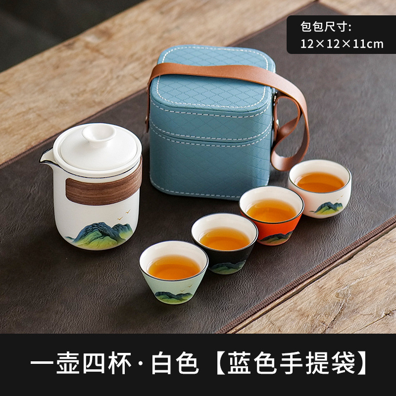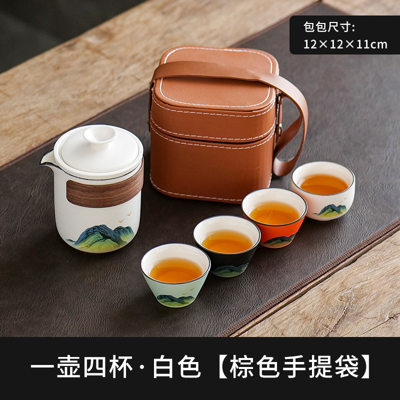 leyan ceramic white landscape [four colors] one pot four cups [yuncheng beige portable bag]]