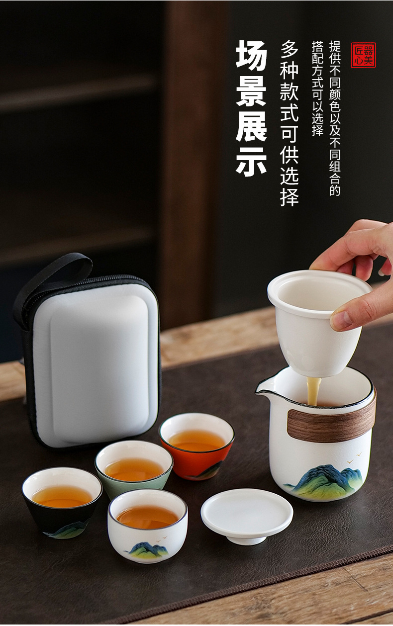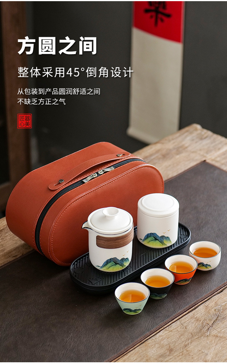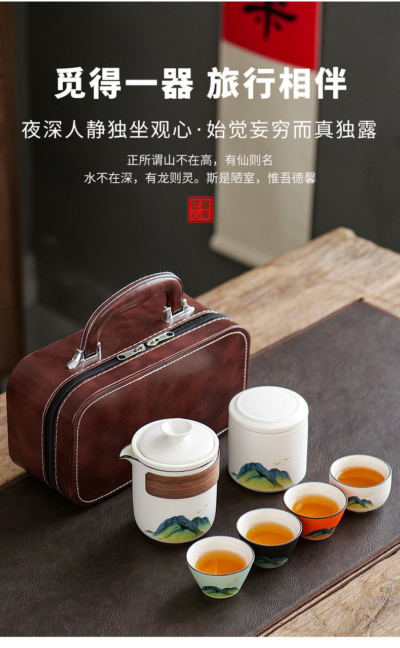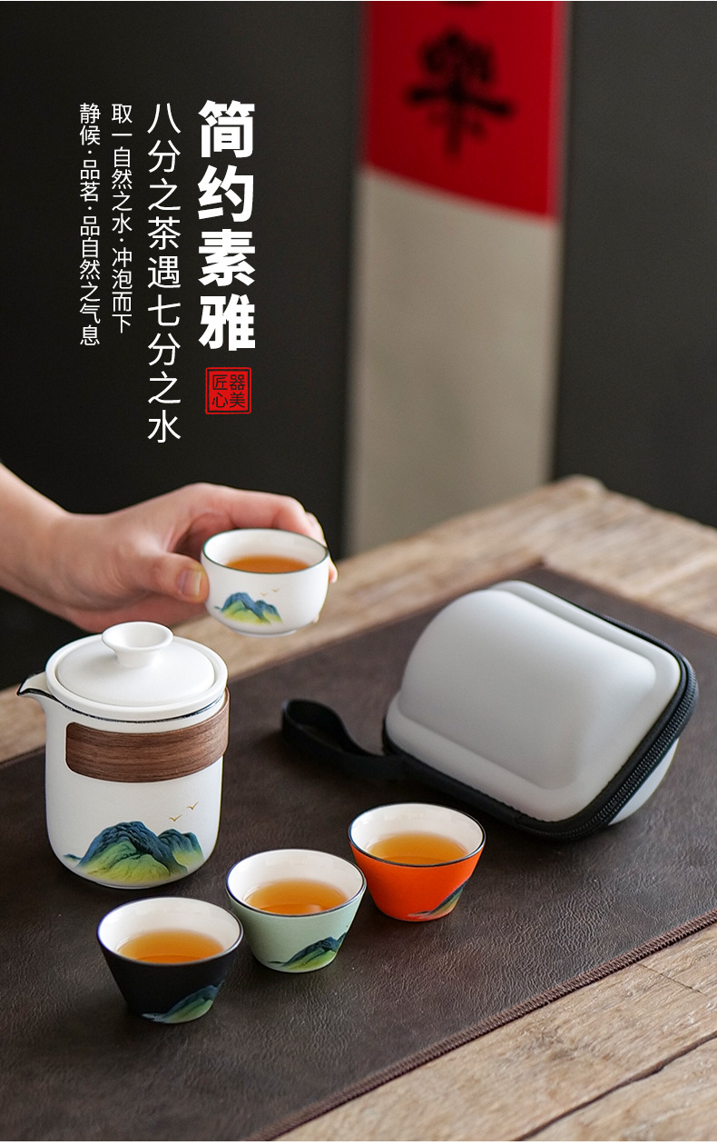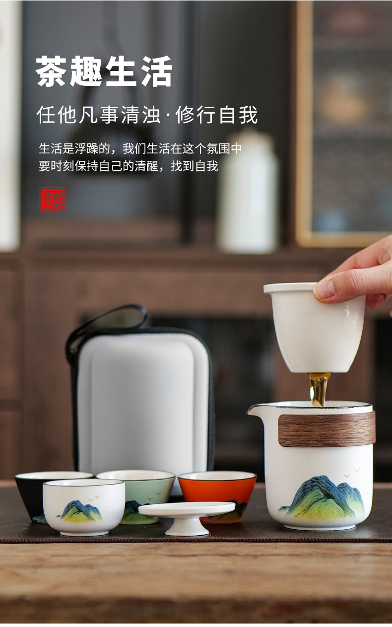 leyan ceramic white landscape [four colors] one pot four cups [yuncheng beige portable bag]]