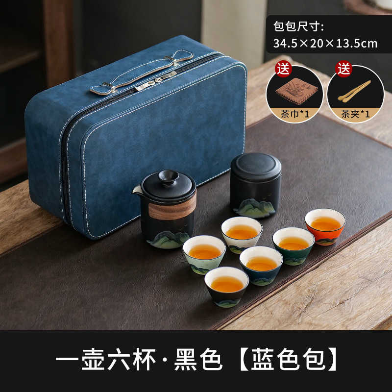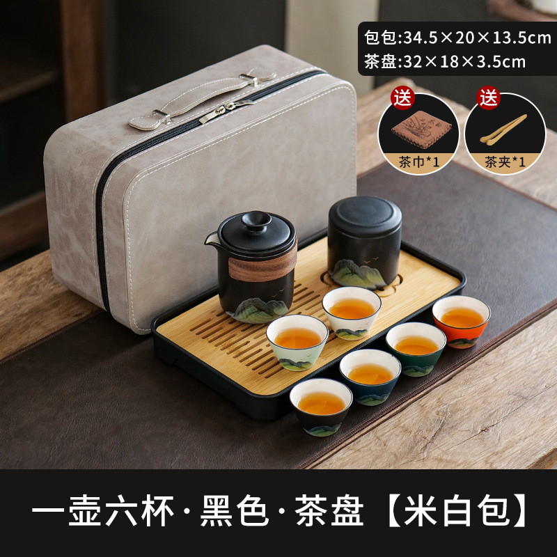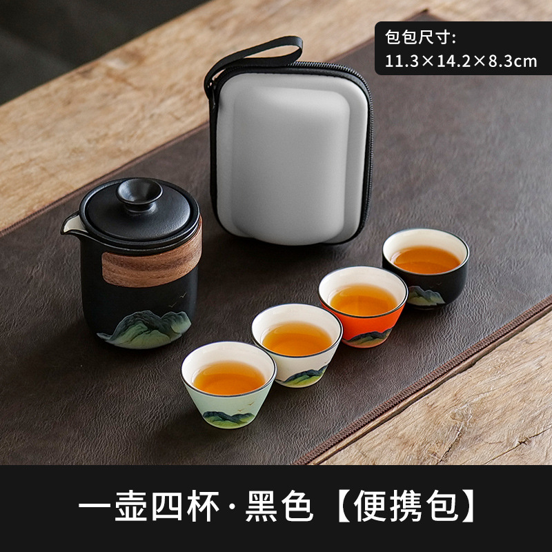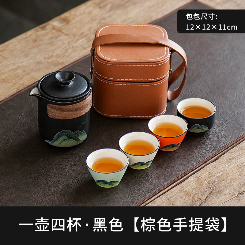 leyan ceramic black landscape [four colors] one pot four cups [yuncheng beige portable bag]]