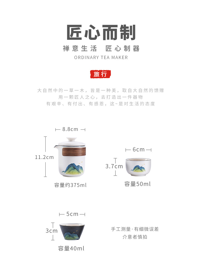 leyan ceramic white landscape [two colors] one pot two cups [yuncheng beige portable bag]]