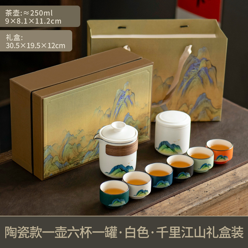 leyan ceramic six cups per pot [six colors] with cans between landscapes (white)-thousand-li landscape gift box