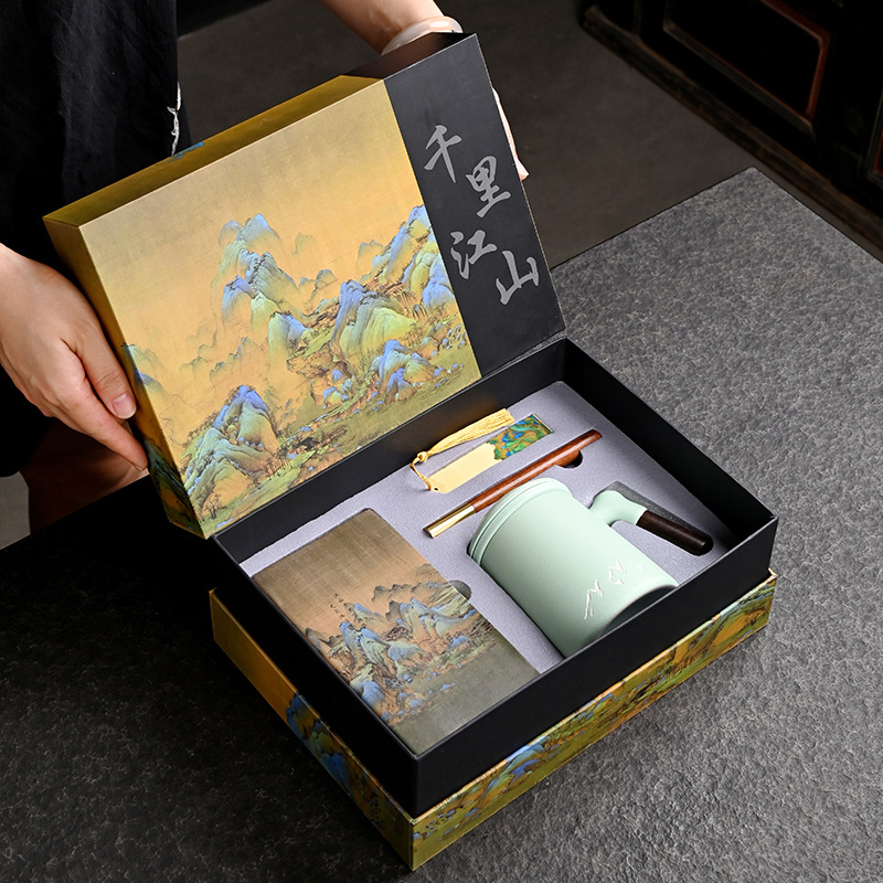pea green cup + bookmark + ruyi u disk + notebook + pen [thousand-li landscape gift]]