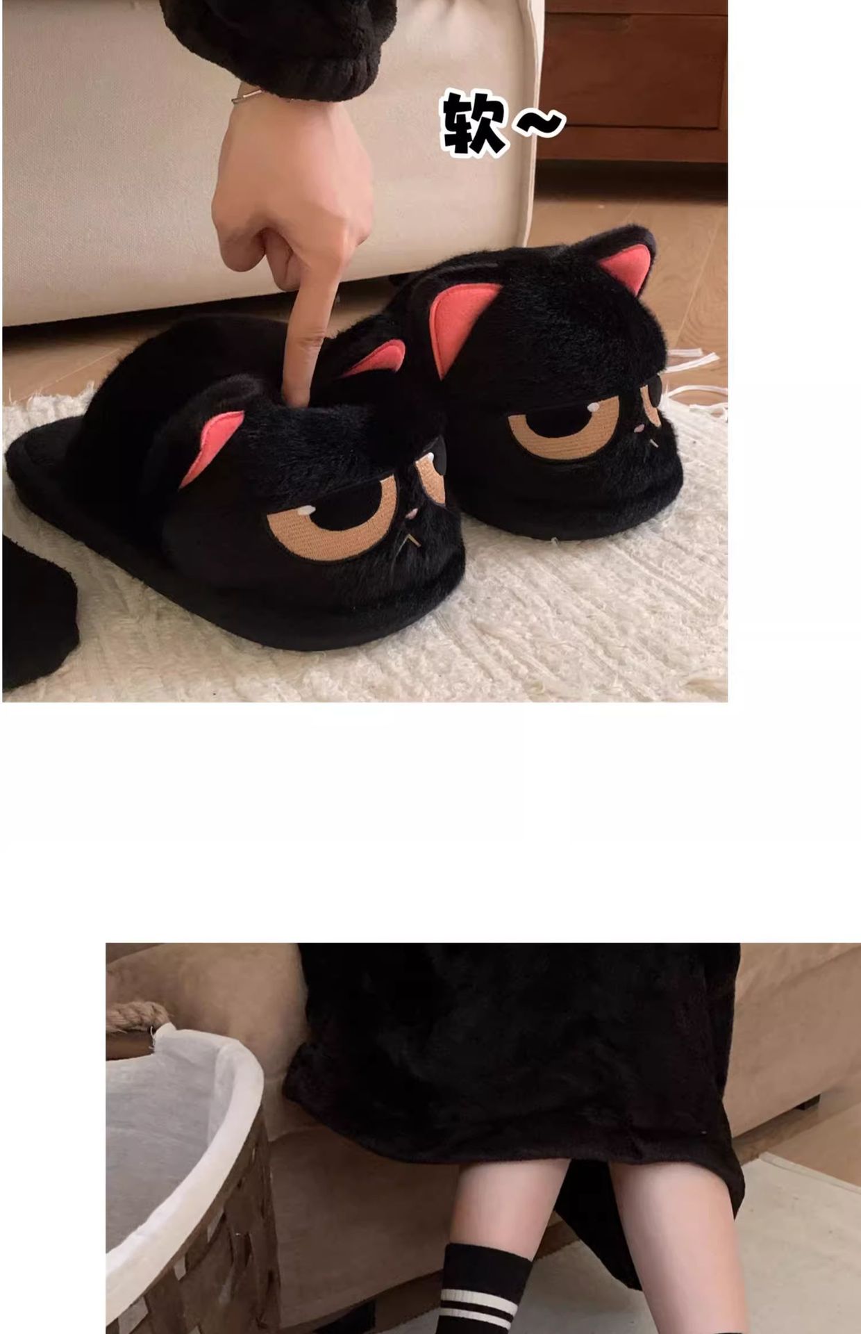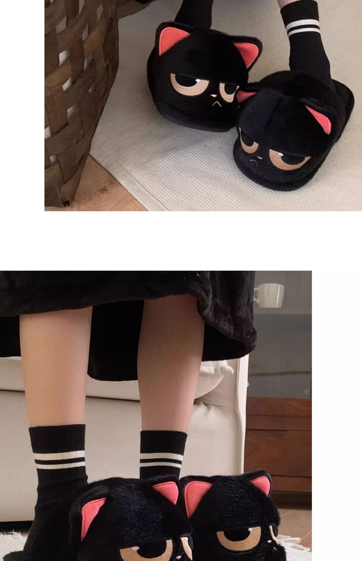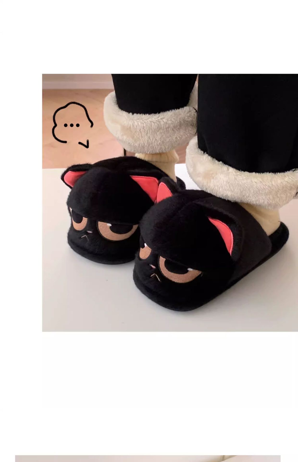 winter cartoon cute couple angry little black fluffy slippers indoor men and women insulated cotton-padded shoes 中文版