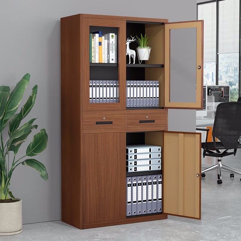 deep the pattern of walnut-way glass file cabinet