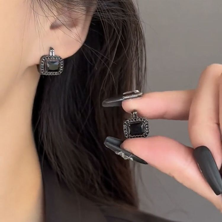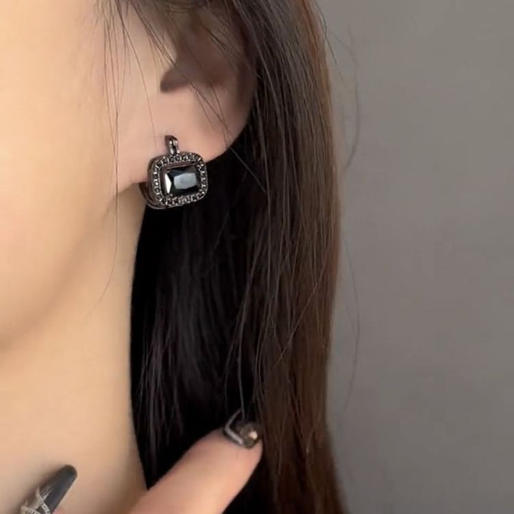 1268# black square ear clip