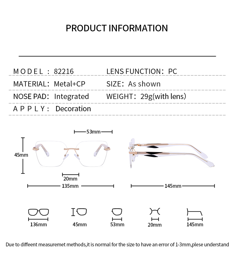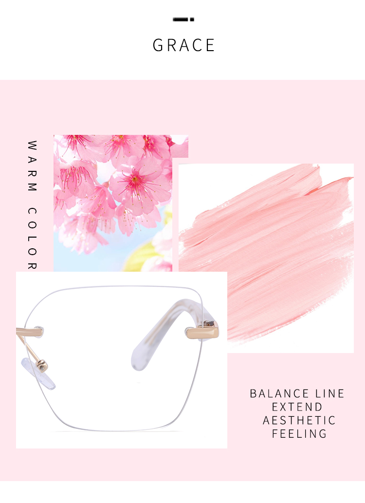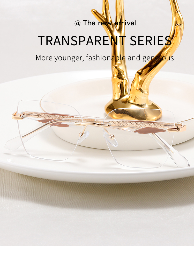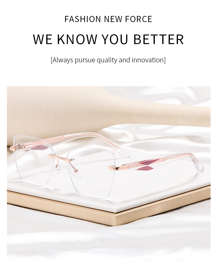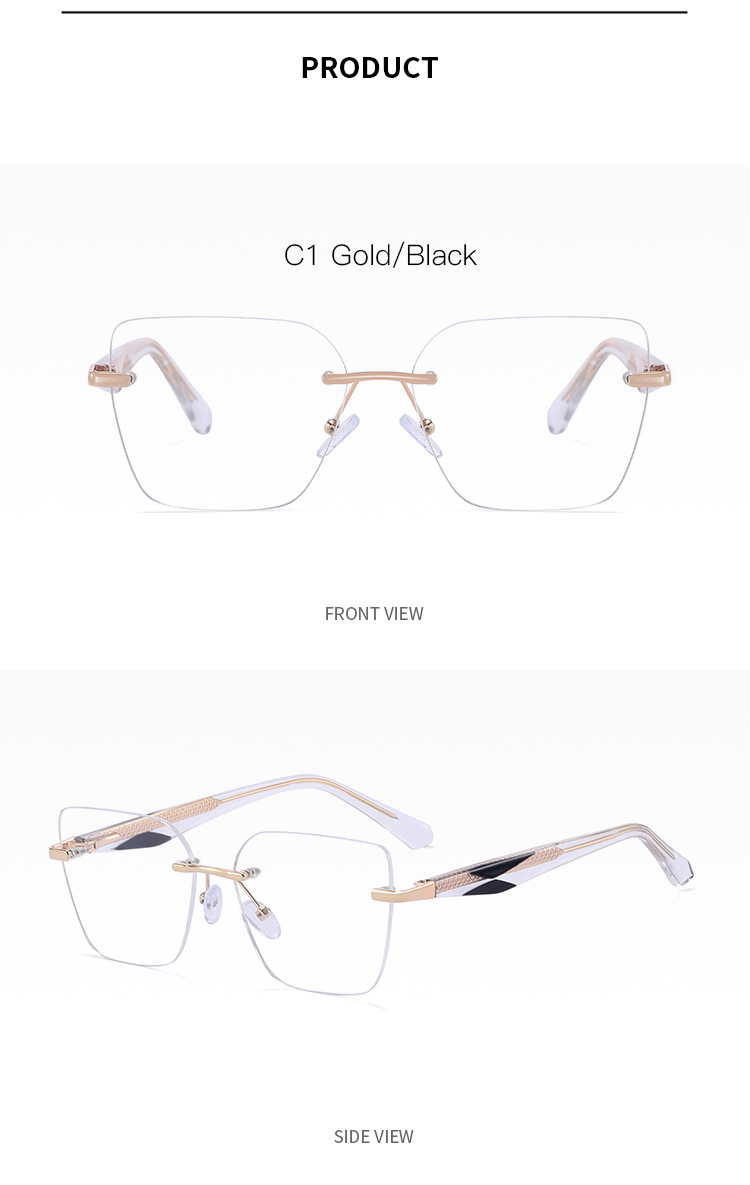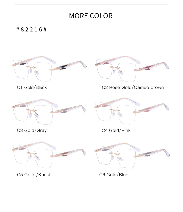 82216 Wholesale Luxury Brand Designer Trendy Rimless Metal Frame Eyeglasses Transparent Women Acetate Optical Frames