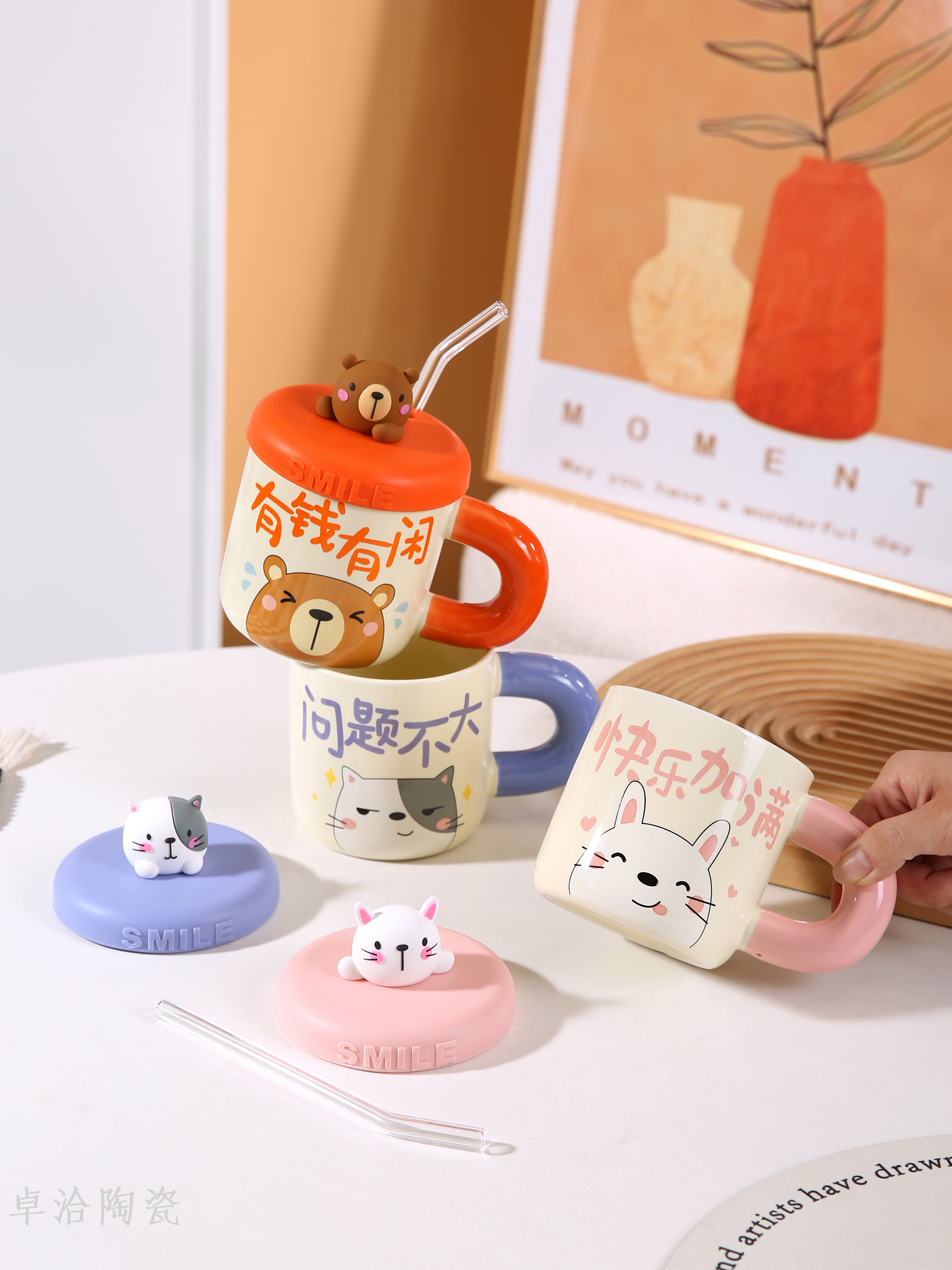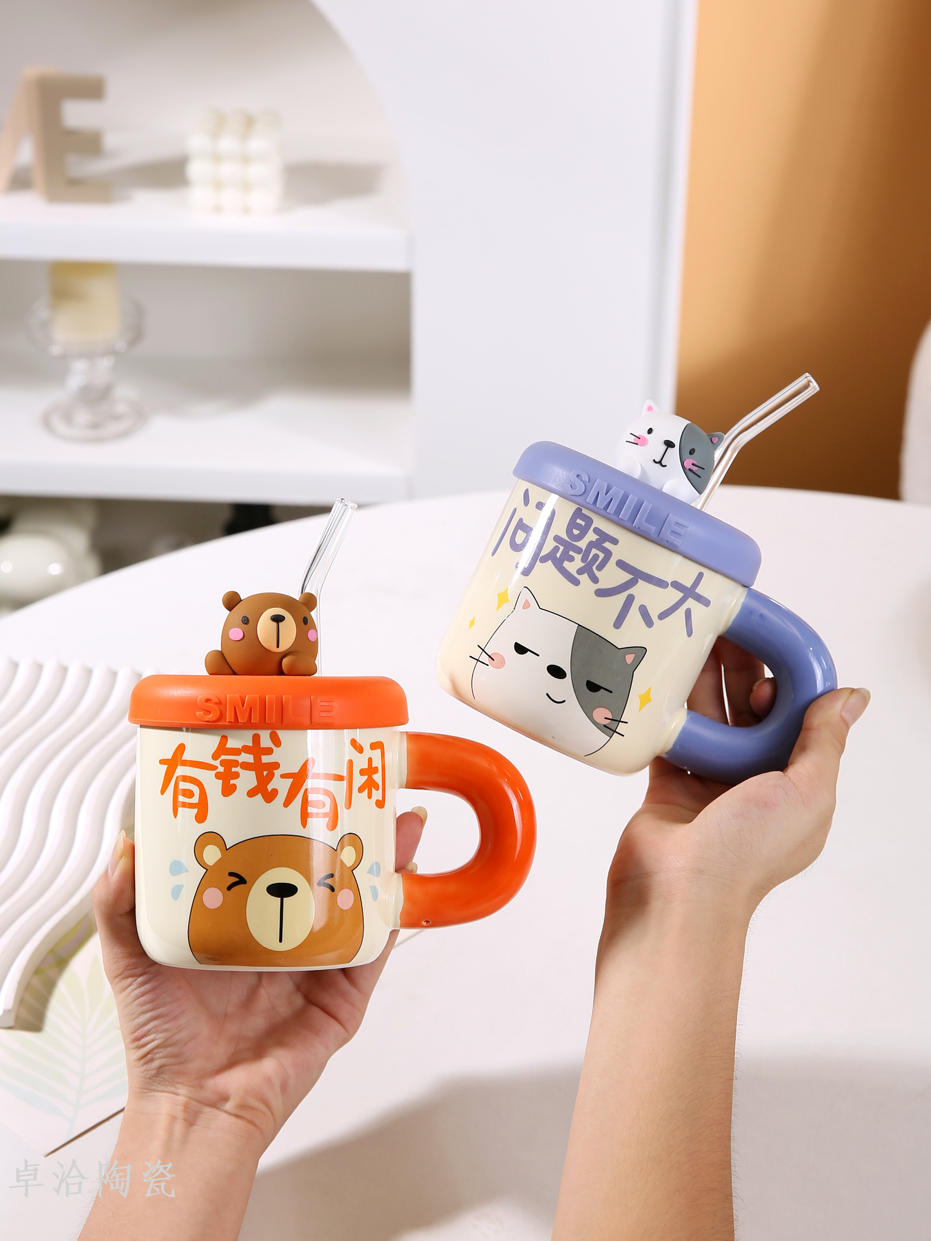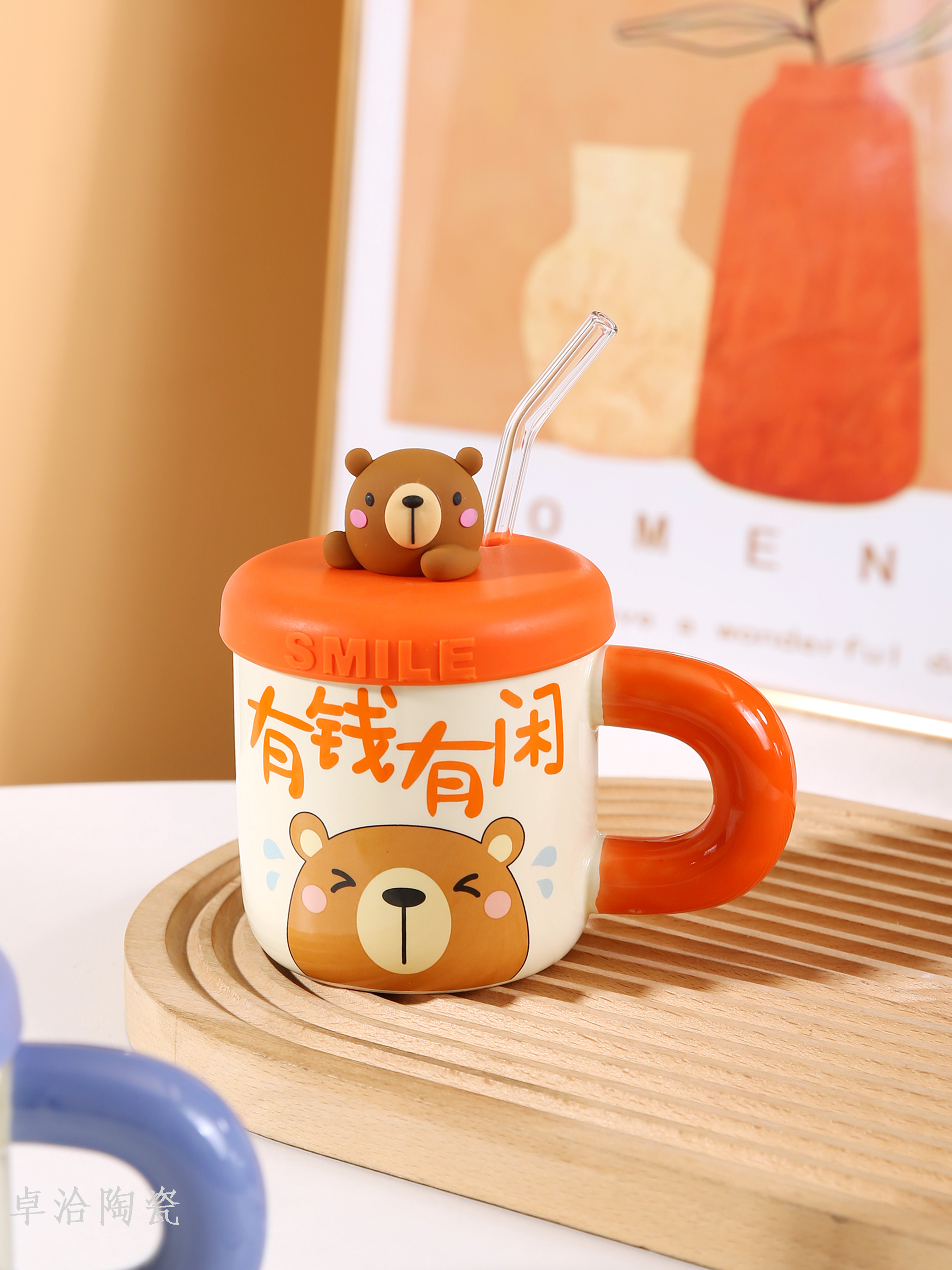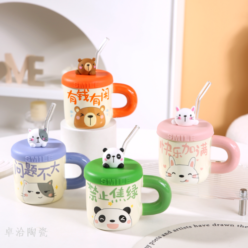 ceramic cute bear drinking cup straw cup with lid and straw student dormitory bedroom essential mug