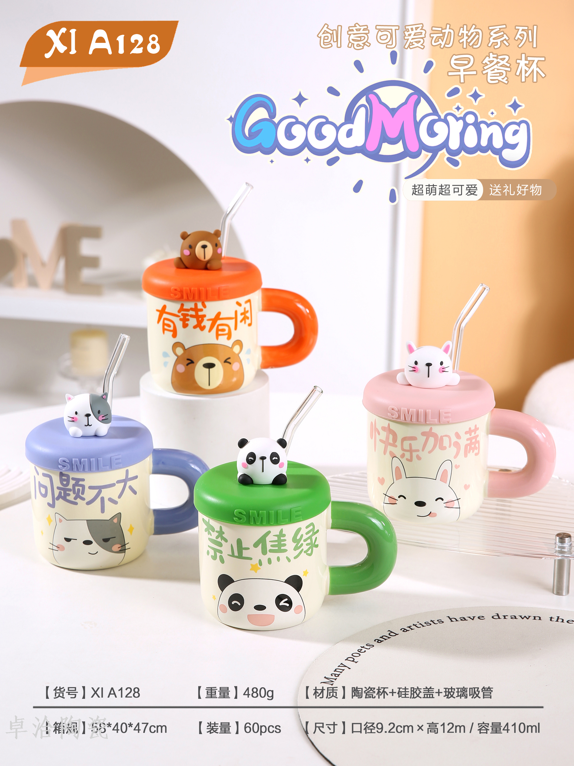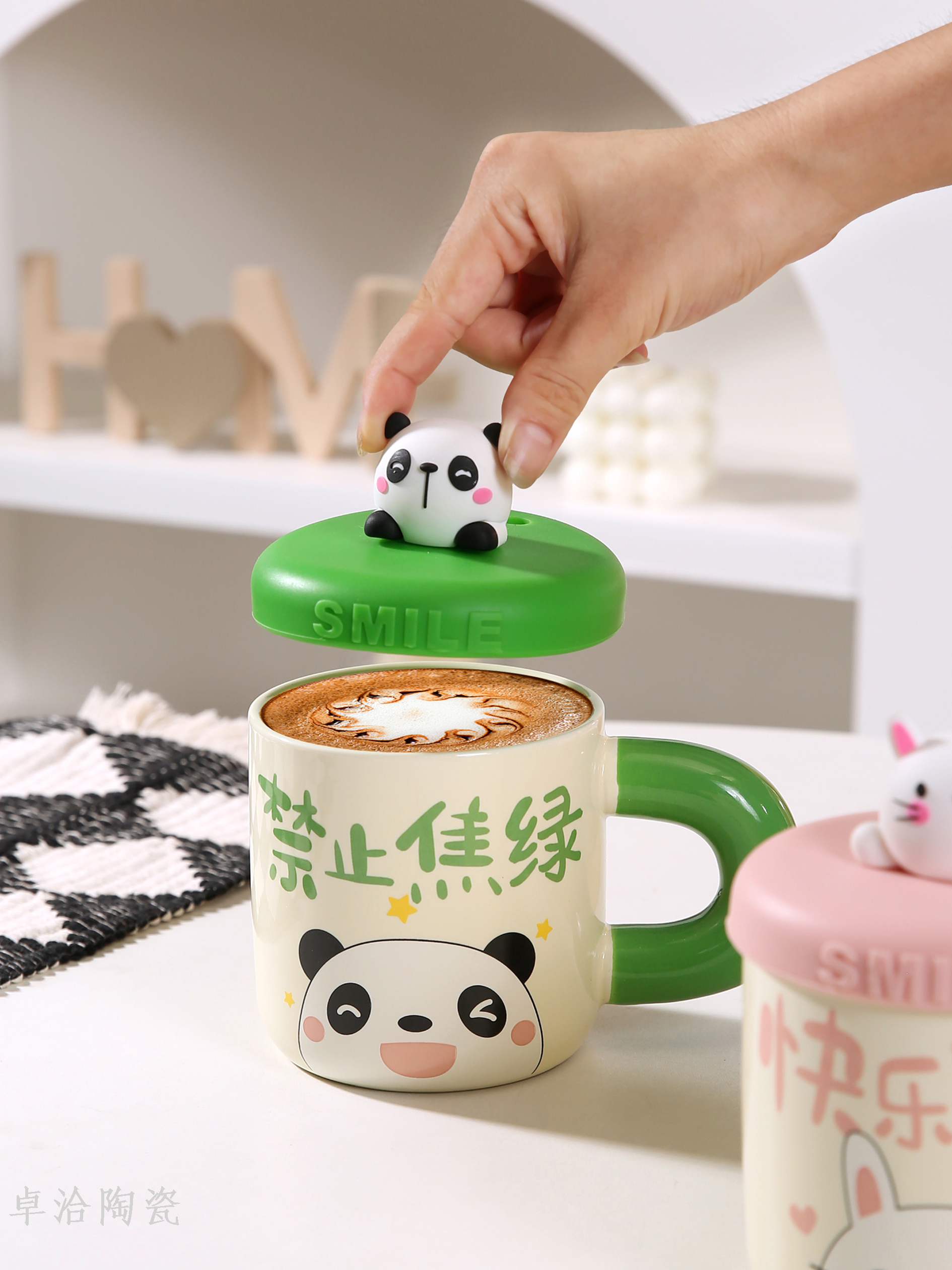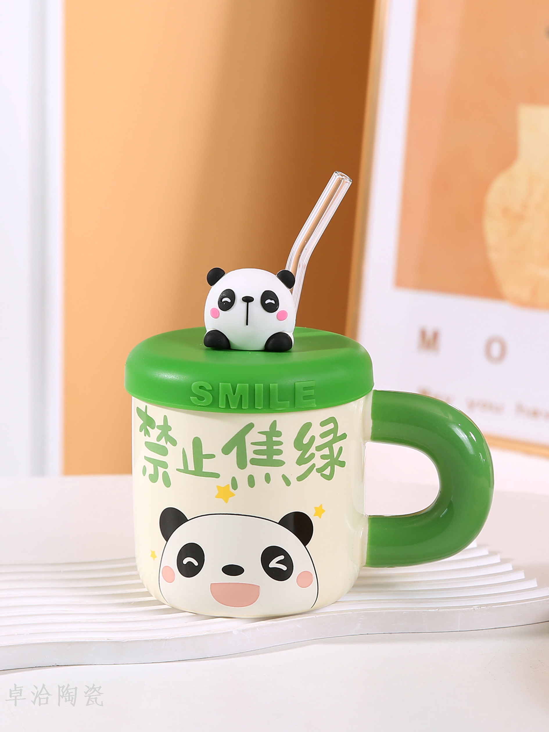 ceramic cute bear drinking cup straw cup with lid and straw student dormitory bedroom essential mug