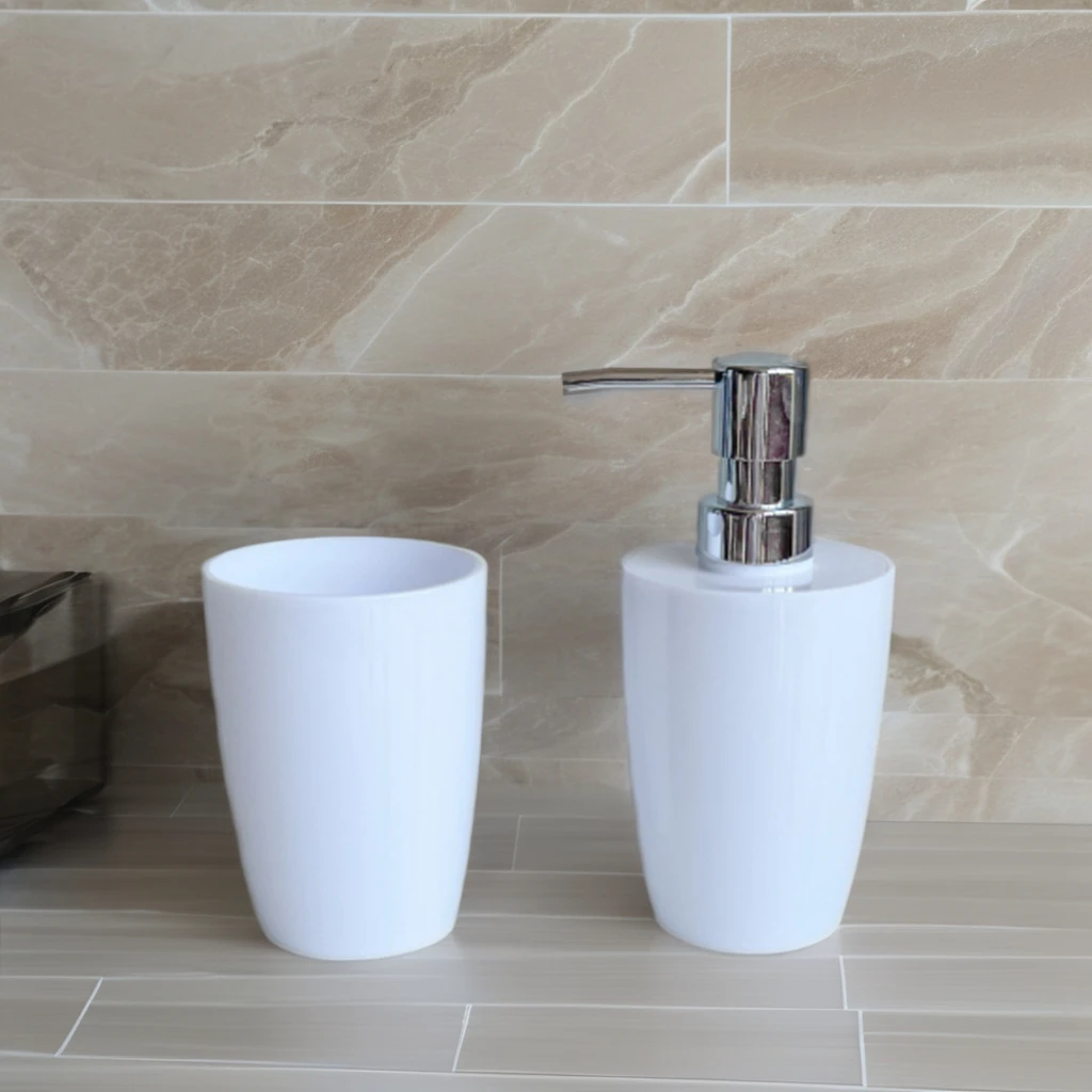 Custom White Color Concrete Hotel Accessories Bathroom Set 2 Piece Bathroom Accessories Set