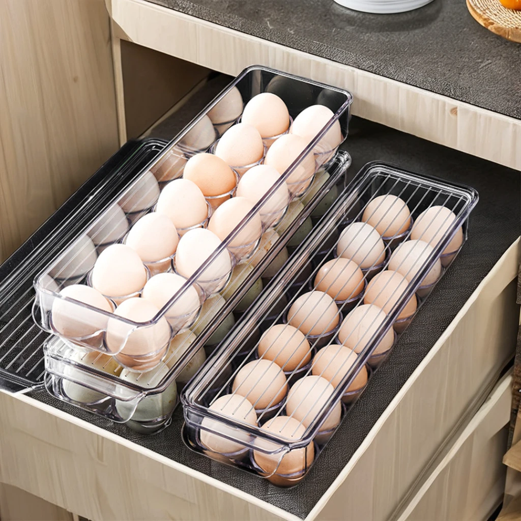 Double Layer Rolling Egg Dispenser And Storage Organizer Container Refrigerator Egg Storage Box