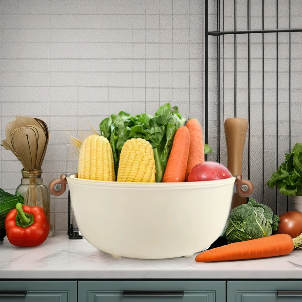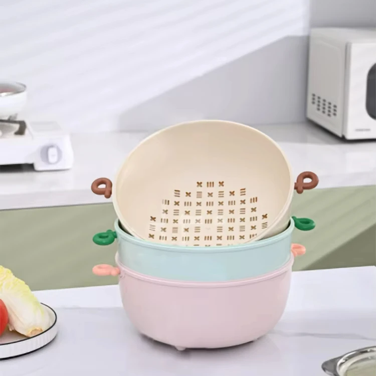Kitchen Double-Layer Drain Basket Household Living Room Thickened Vegetable Washing Basin Fruit and Vegetable Washing Basket