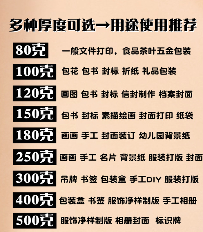 | 500g large kraft paper 1 piece (889 * 1194mm) | CN¥ 5.82 | 8871 piece available |