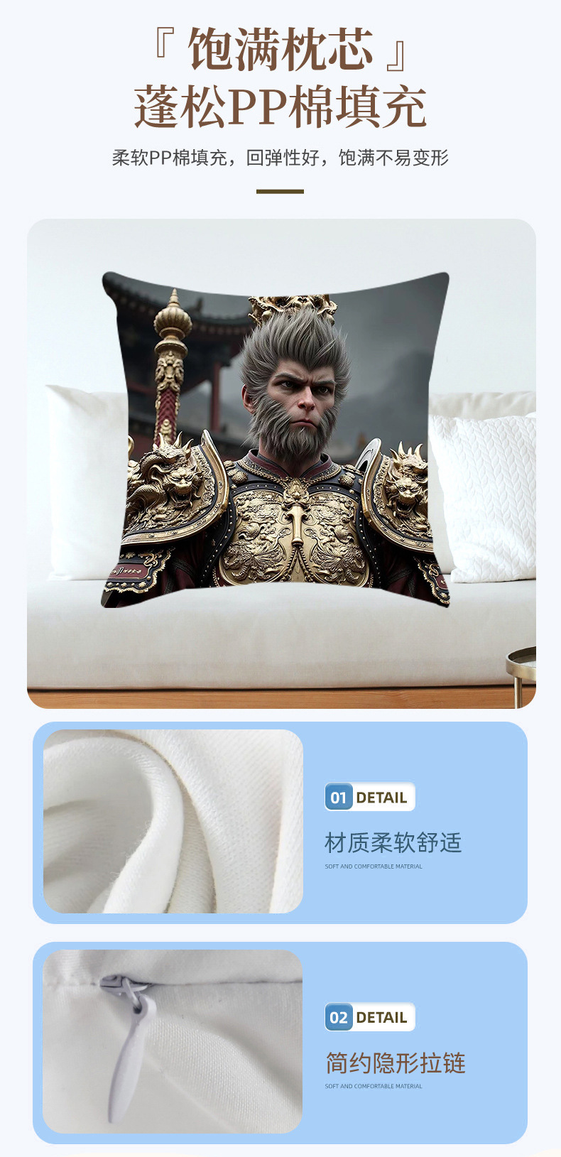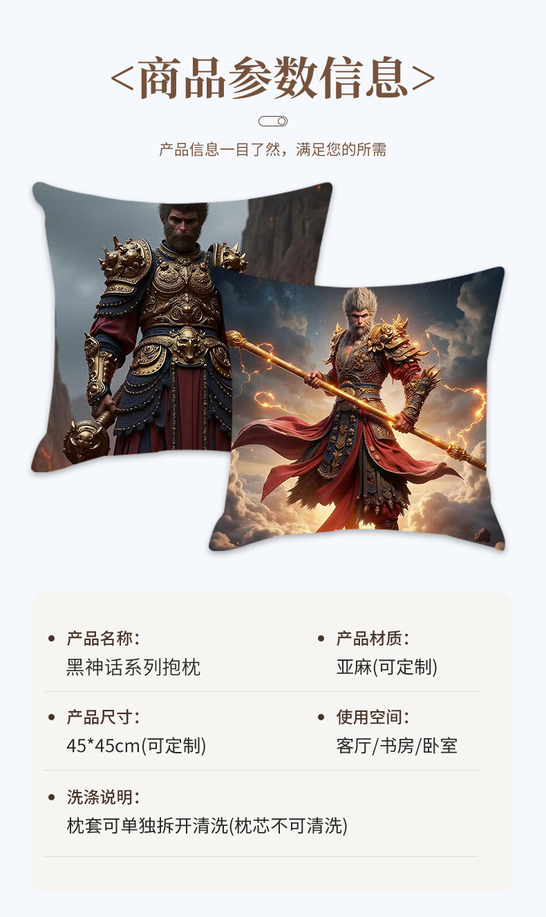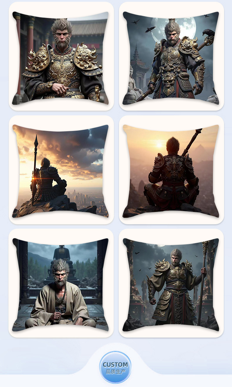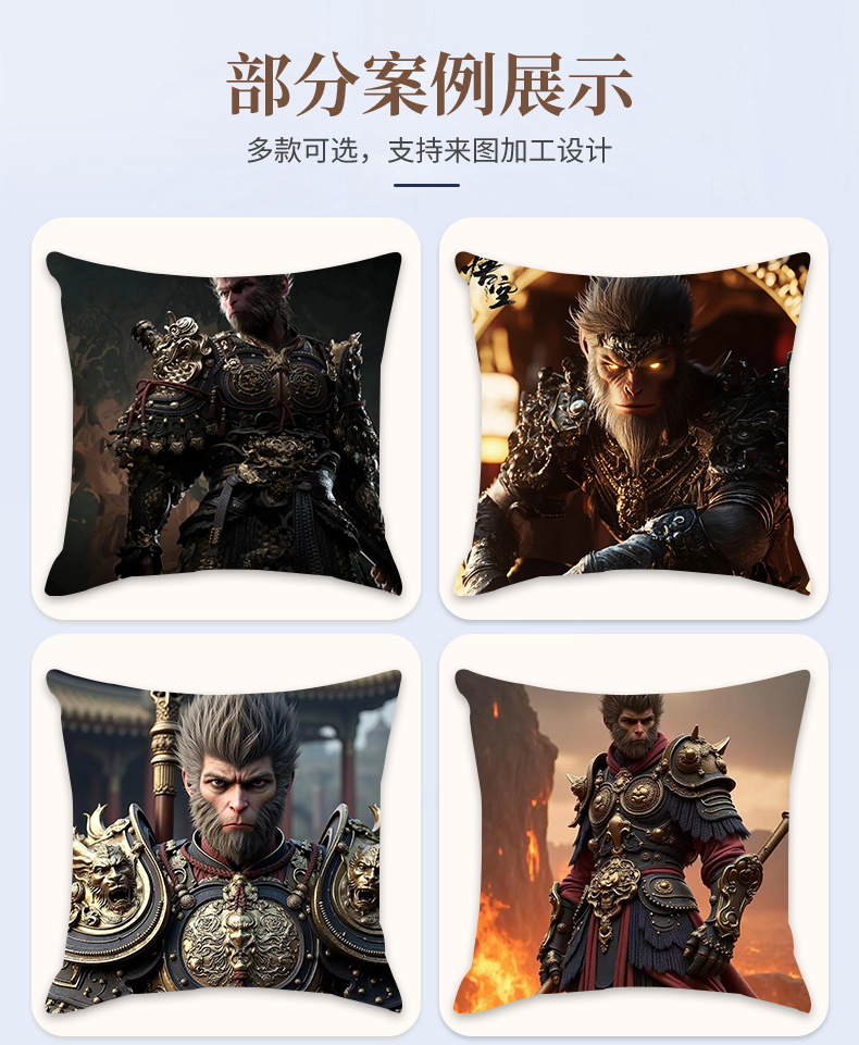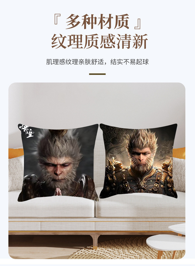 New Internet Celebrity Myth Wukong Series Pillow Comfortable and Soft Car Home Bedroom Bedside Cushion Cushion 中文版