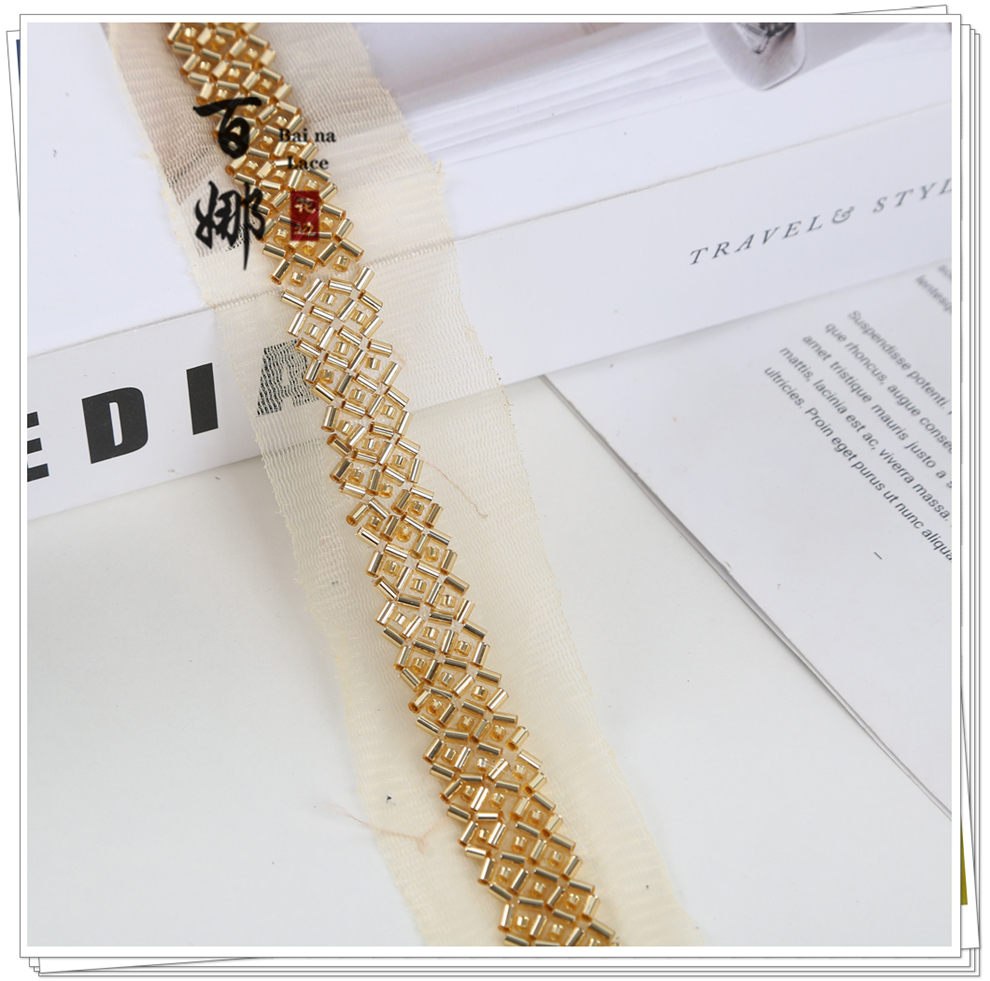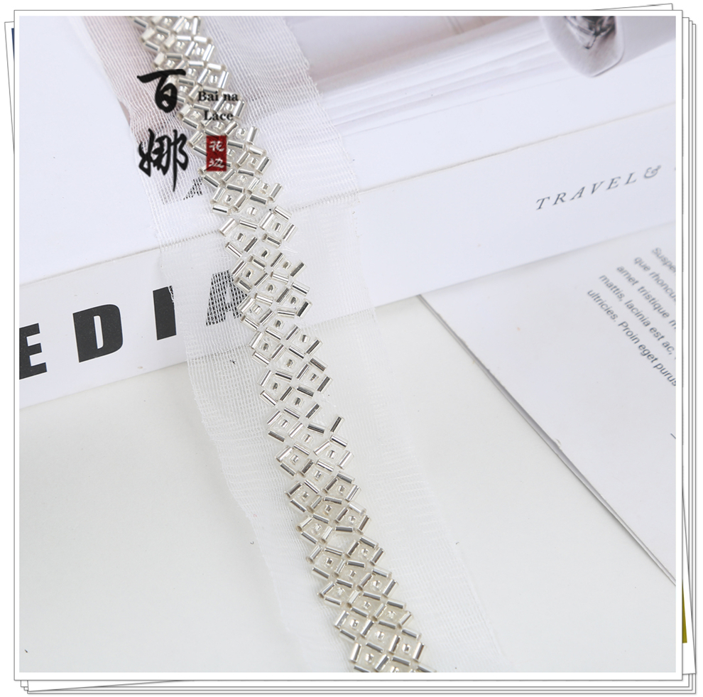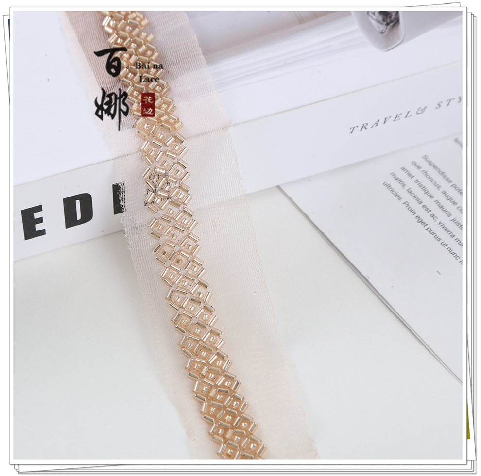 Product Name: Direct Factory Supply 1.7cm Wide Beaded Tube Bright Lace Edge Dense Lace Flower Edge Garment Wedding Dress Decorative Netting Accessory Weaving Belt