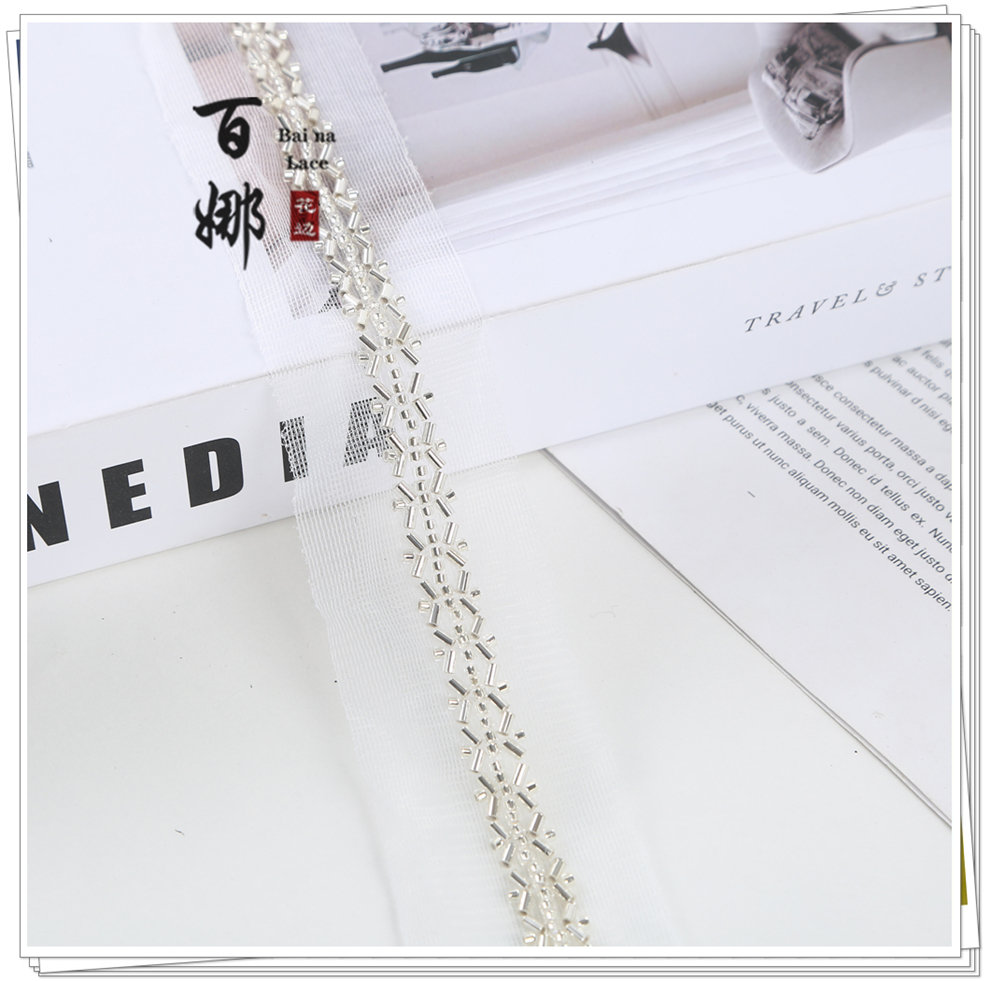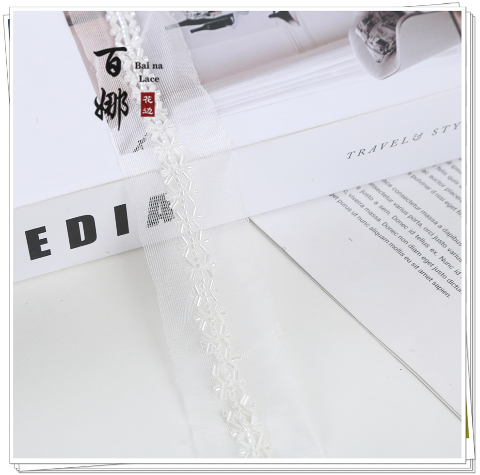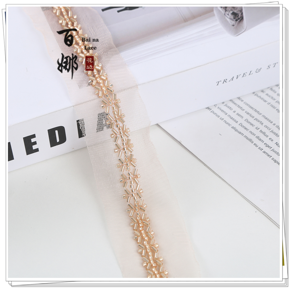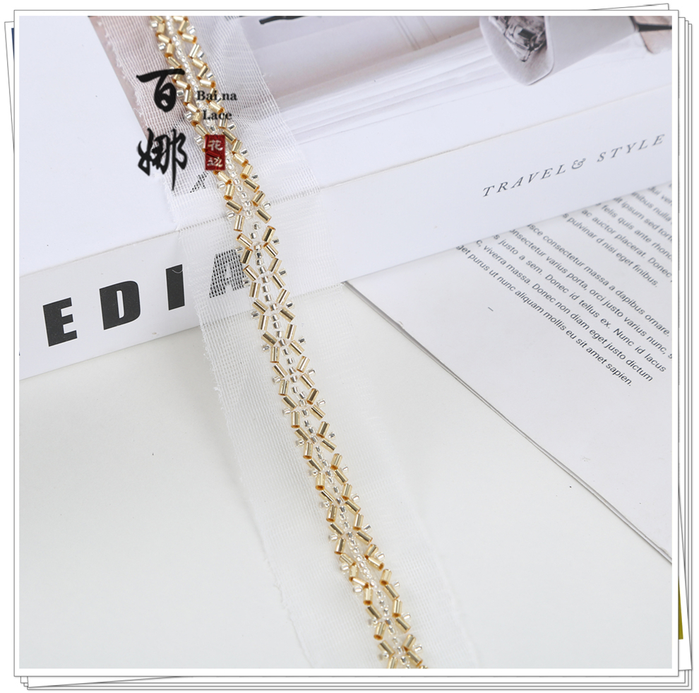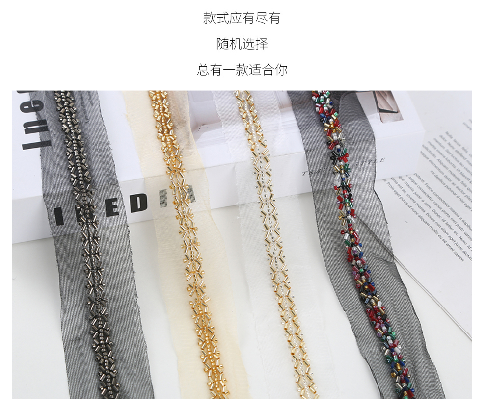 产品名称:对称铺婚纱舞蹈小香风礼服装饰绳带斜铺包包鞋辅料钉珠条码花边带