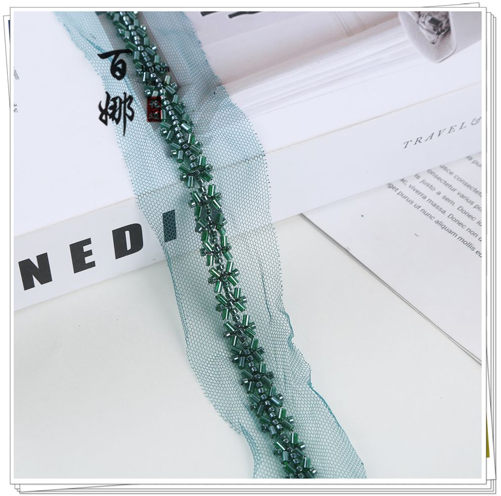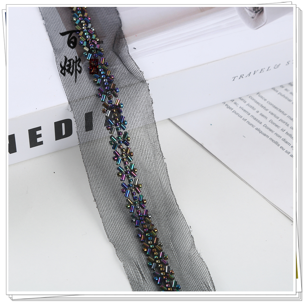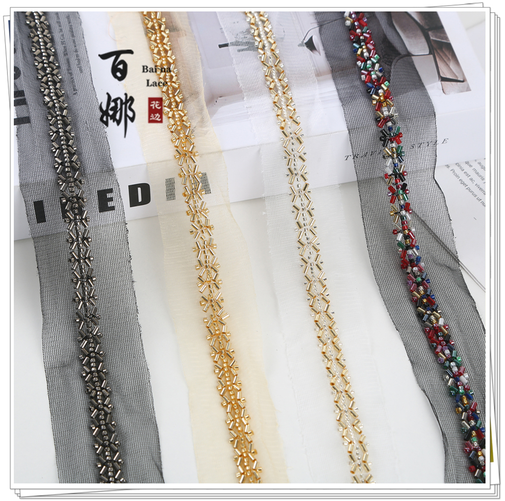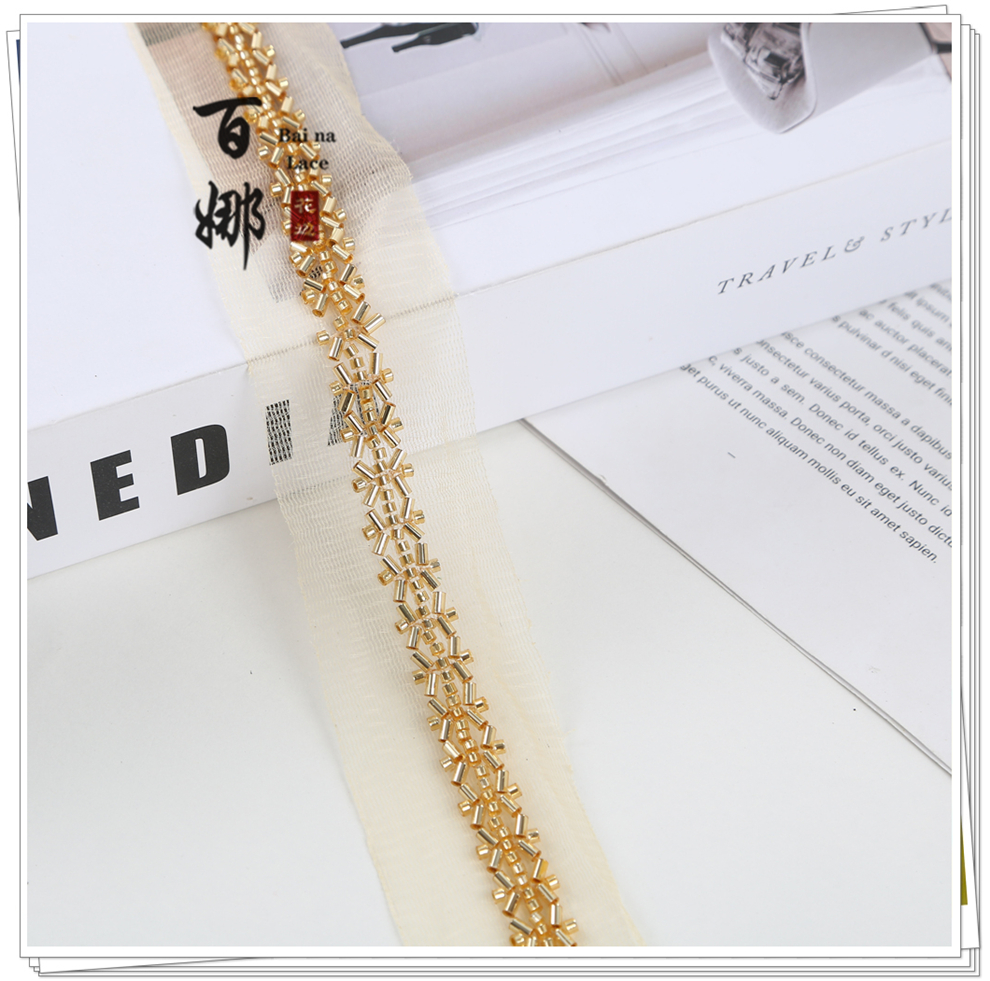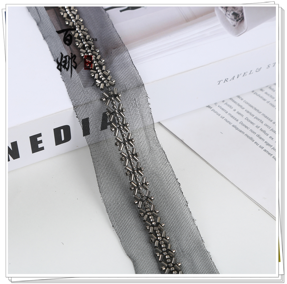 产品名称:对称铺婚纱舞蹈小香风礼服装饰绳带斜铺包包鞋辅料钉珠条码花边带
