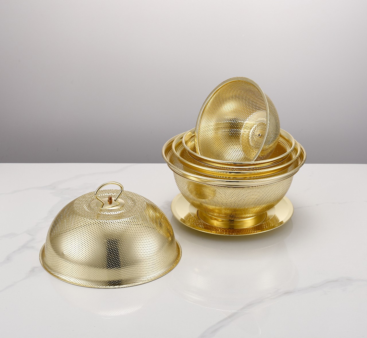 stainless steel dense hole fruit basket suit gold plated dense hole basket suit candy basket snack basket wholesale 中文版