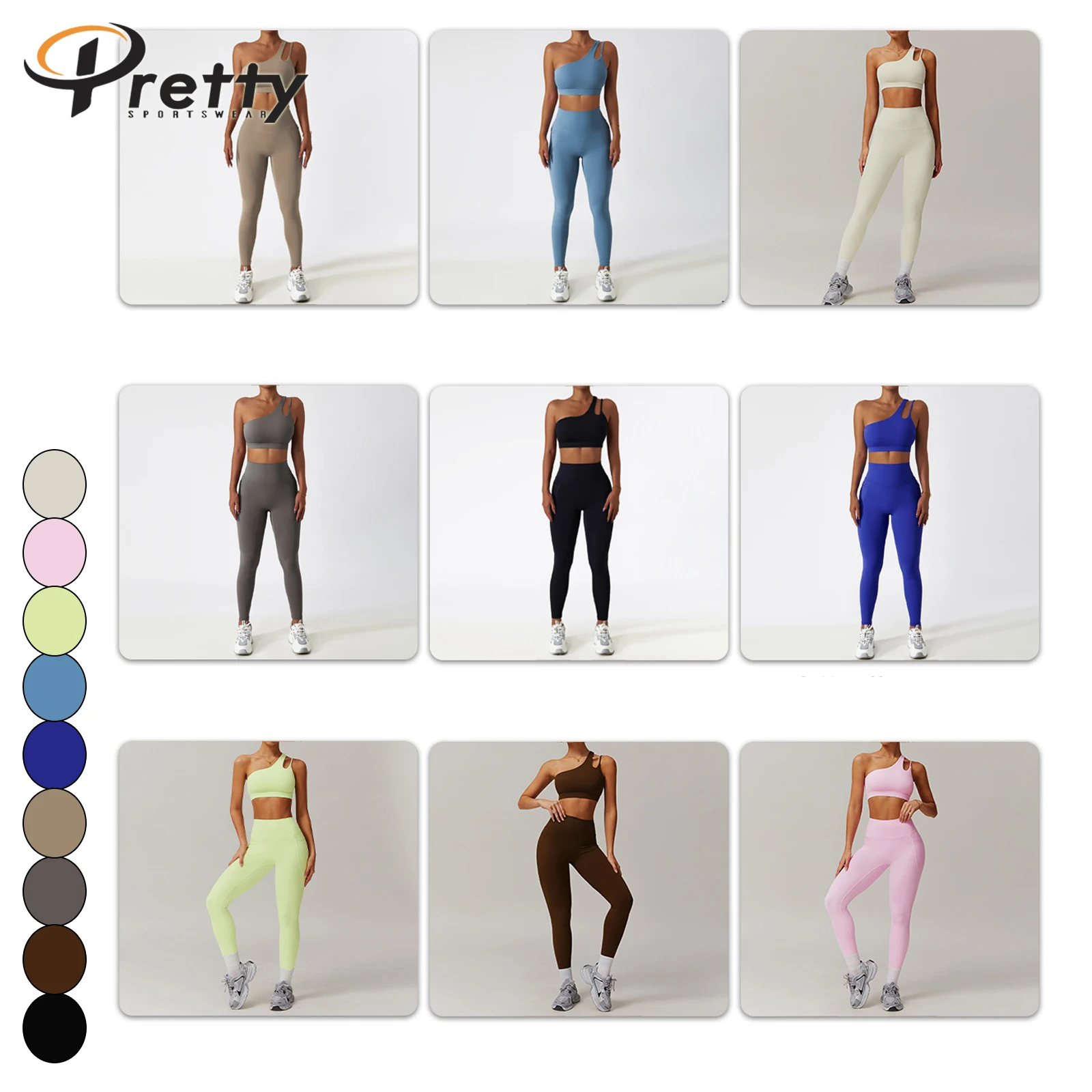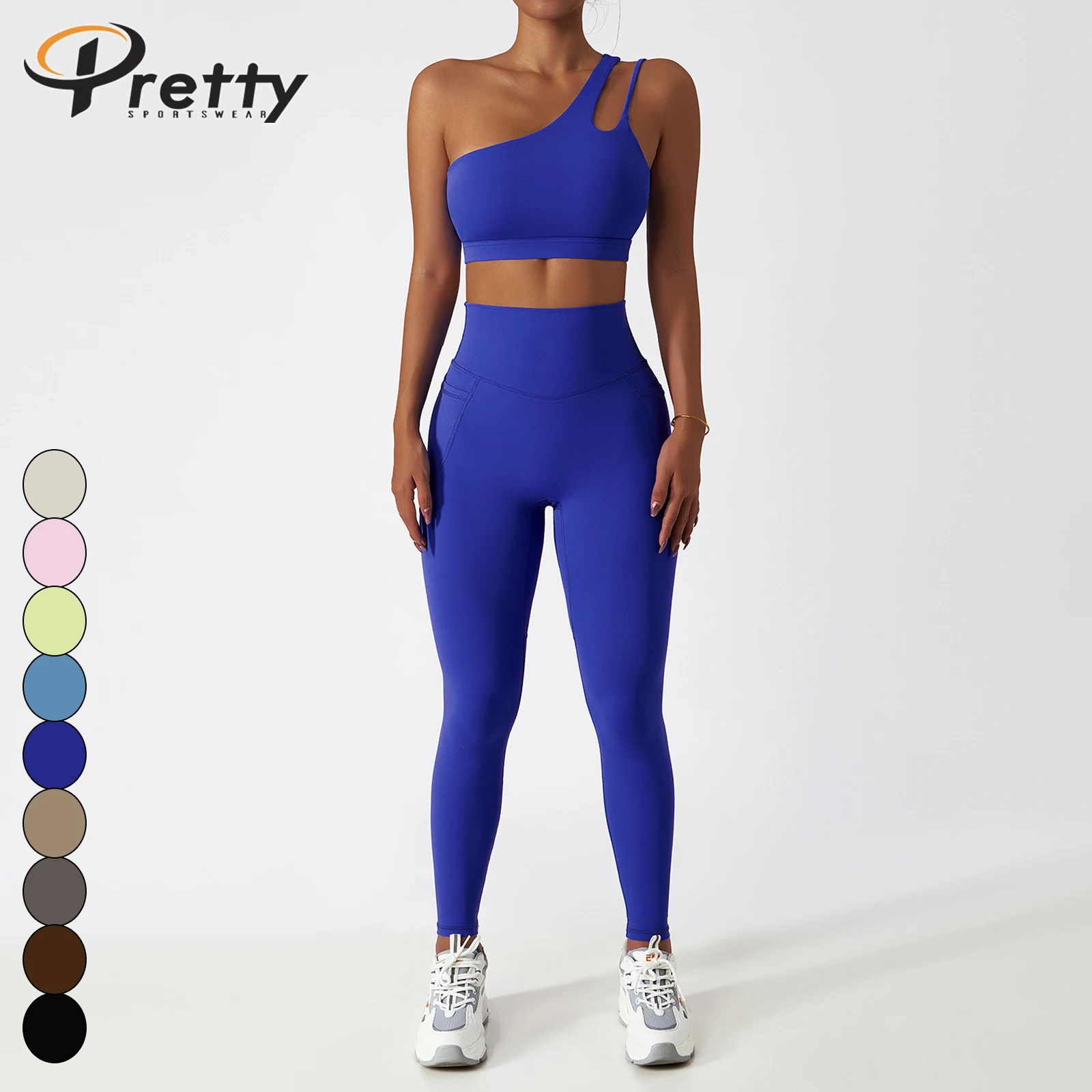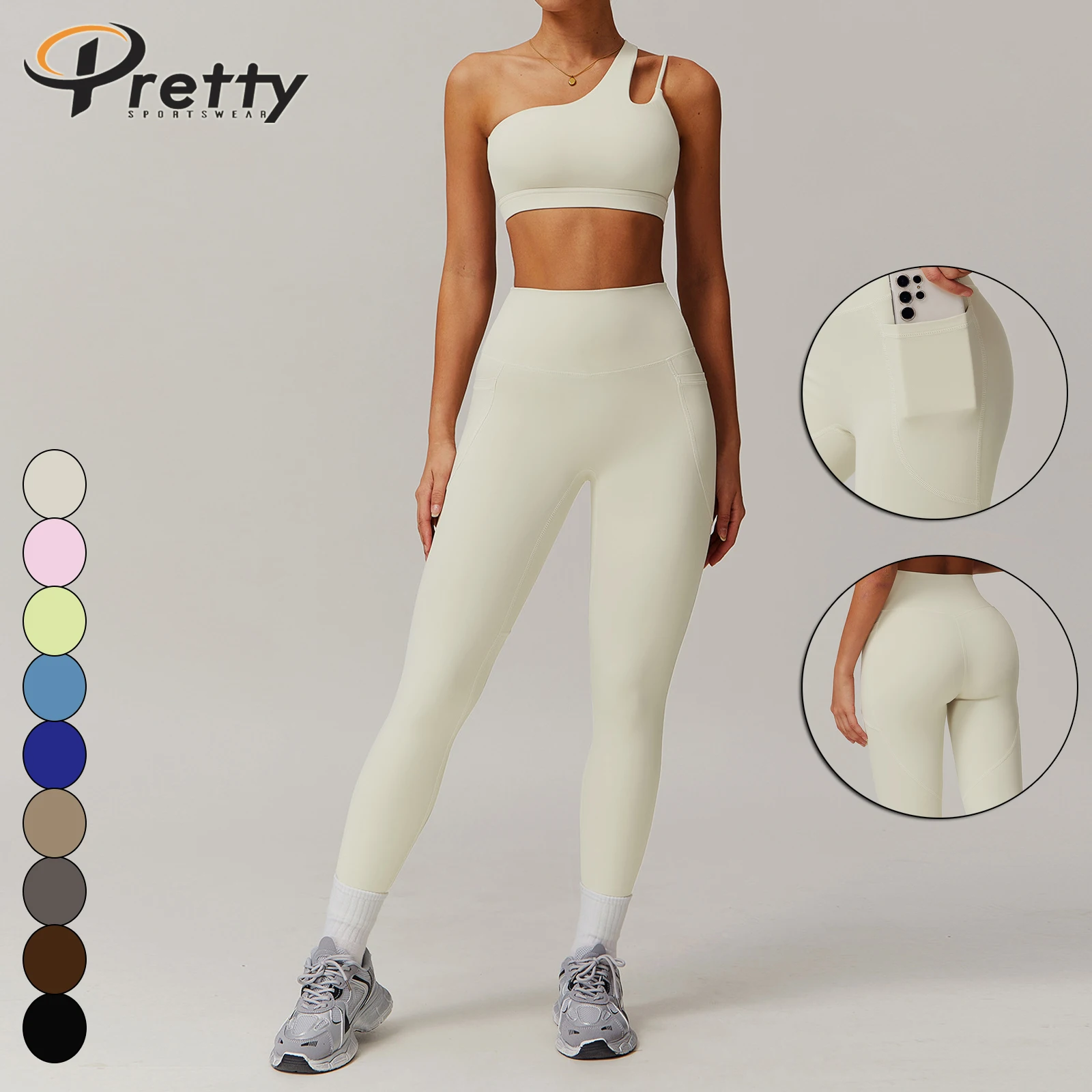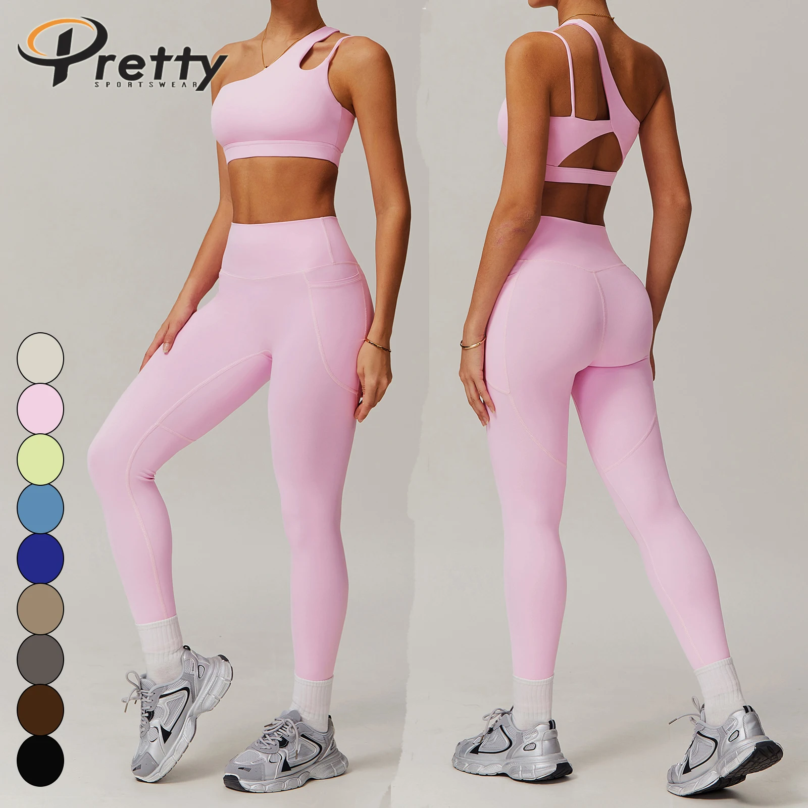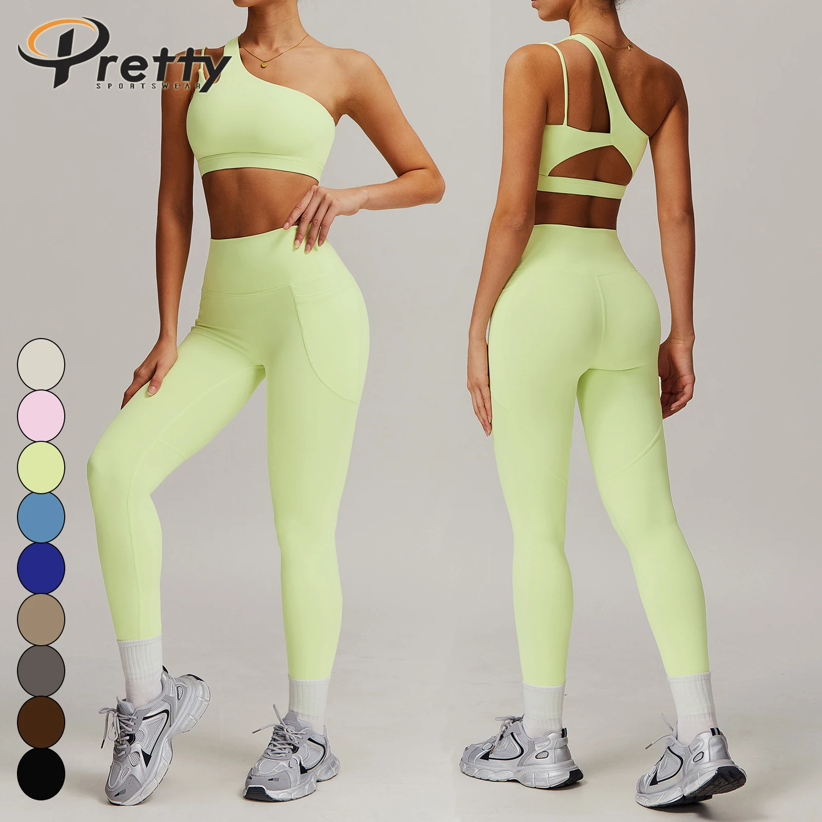 Women's Fitness Sets One-shoulder Sports Bra Yoga Leggings With Pocket Activewear For Women Athleisure Sportswear