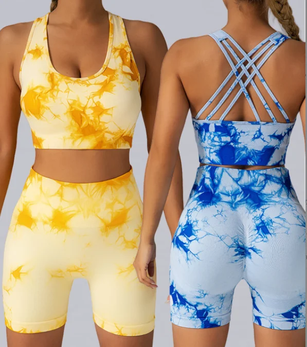 2025 New Style Tie-dye Yoga Sports Set For Women High Elasticity High Support Sportswear Gym Fitness Shorts Set