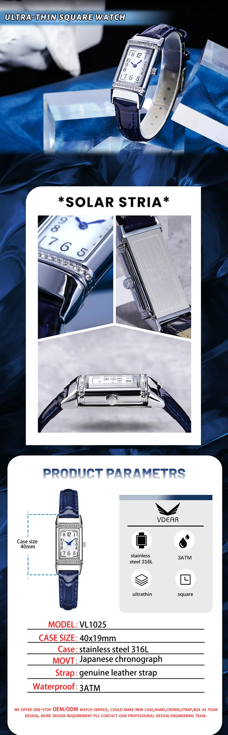 1. What's your best price for this watch? A: Quotation will depend on your quantity and material Please kindly let us know your quantity when you inquired. Any question about the prices, please contact us for discussion. Price is negotiable. 2. What's your MOQ? A: For stainless steel case, we require 200 pcs for each model, 100pcs per color. For alloy case, we require 300 pcs for each model, 100pcs per color. If you need low moq,please contact us,we can supply in stock watch with our logo if you dont mind 3.How about the sample? Can I get it for free? And the sample delivery time? A: * For samples, the cost would be 100usd/pcs for normal quartz watch; 200usd / 400usd per piece for mechanical watches and dive watches. * And shipping cost depends on which area you are. * But don’t worry, sample fee is refundable if we can reach an order for near future * For the delivery time, about 30 days are needed for existing models and about 45 days for new models. 4. What's the delivery time? A: Normally, it’s 35 – 40 days after every details confirmed for mass production.The earlier you order,the sooner we arrange production plan And goods will be delivered when balance is received. 5.What's your packing? A: We offer two packing options for our customers. * Free packing, our normal packing is 1 opp bag for 1 watch. * Customized your own watch box. But please notice it will take extra charge for it. Download Watch Boxes Catalogue. 6.Can we have our own logo or design? A: Sure, your own logo is welcomed and we can make it free for you. You can be customized on dial, caseback, band, buckle or any other places. Also your own design is welcomed, we can make samples or mass production according to your provided samples or designs. 7.What about the warranty? A: We have our QC department. All the goods would be 100% inspected before shipment. Any problems that you find after receiving the goods, please contact us immediately for solutions. We provide 1 year warranty for the customize watches and 2 years for the movement from the date of delivery. We can repair the defect part for free and stand half of the freight. 8: When does your watch factory established? A: Our watch factory is established in 2008, with over 10 years professional experience on watches line, Workers are well-trained and educated. 9: What kind of watches do you offer? A: Basically all kinds of quartz and mechanical watches, by using Japan or Swiss original movement. Different kinds of material: alloy watches. 316l Stainless steel watches, silicone watches, wood watches/ mineral glass, sapphire glass, dome glass/ Genuine full grain leather strap, vegan leather, stainless steel link band, stainless steel mesh band, nylon strap. Please note that we don’t provide digital or smart watches. 10: What's your production capacity per month? A: Our production capacity per month is 500,000pcs. 11: Do your watches meet Europe & American standard? And what kinds of certificate would you have? A: Yes, our watches do meet Europe & American standard. And we have CE, ROHS, SGS, ISO9001, you can check the copy of them on our website. 12: Would you have your own design team to design watches per our request? A: Sure, our professional design team will provide the best design drawing before sampling or order. When you need an artwork, just let us know, free charge. 13: Can you ship to my country? How long will the shipment take? A: Sure, we ship goods worldwide by DHL / TNT / UPS / EMS / FedEx / Aramex, etc. It would take about 3-7 days depend on different courier you choose. Default courier is DHL(door to door). The cost mostly depends on the final choice for the watches models, packing and shipping method, for sure we will recommending the most economic one for you.