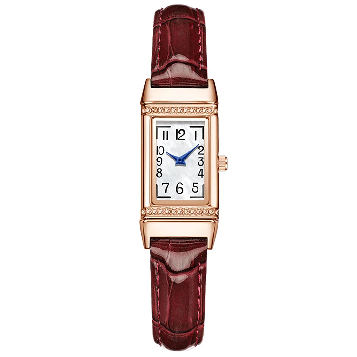 Fashion Rose Gold Case Luxury Classic Design Shell Dial Ladies Diamond Square Quartz Watch Water Resistant Wrist Watch For Women
