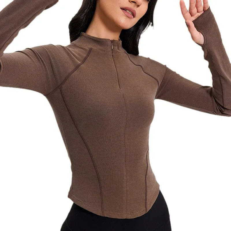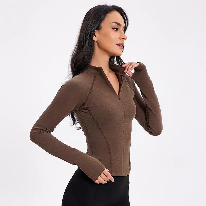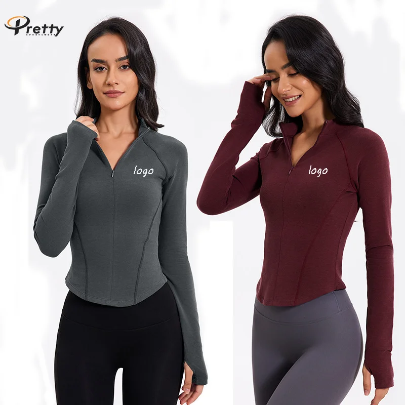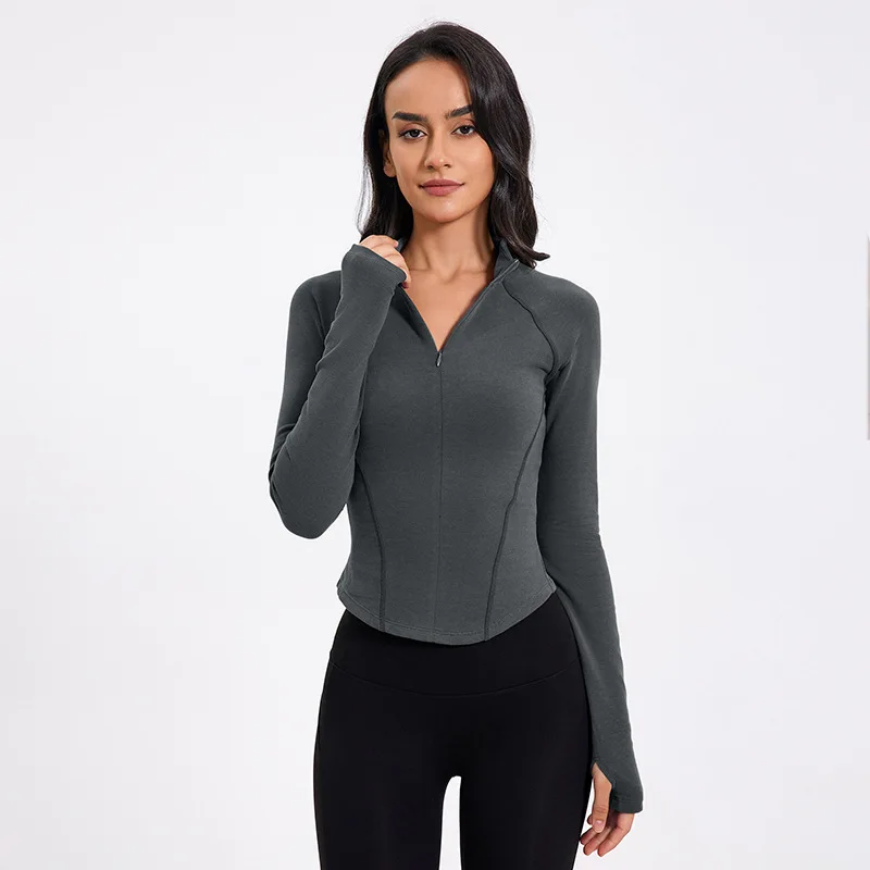 Hot Sale Long Sleeve Yoga Top Windproof Fleece Coat Slimming Sports Top Gym Zipper Fitness Custom Logo Stand Collar Jackets