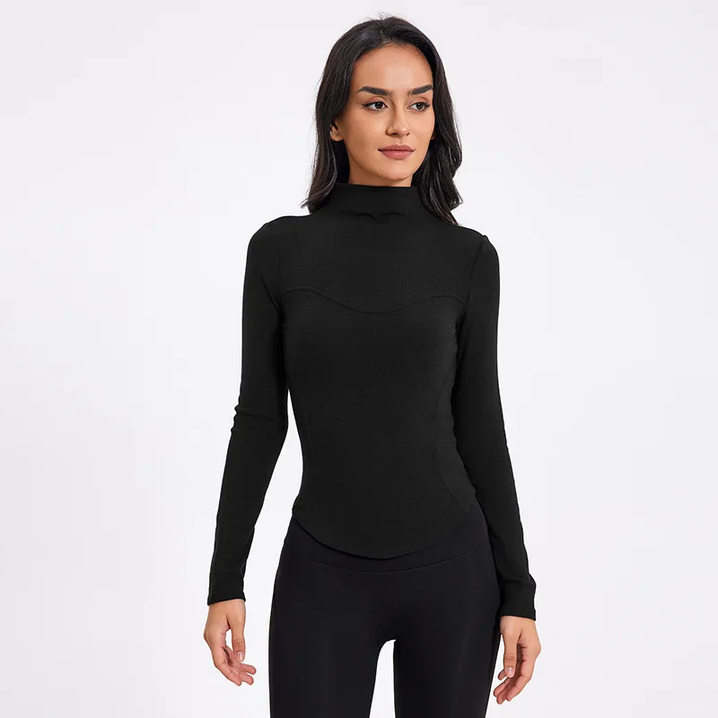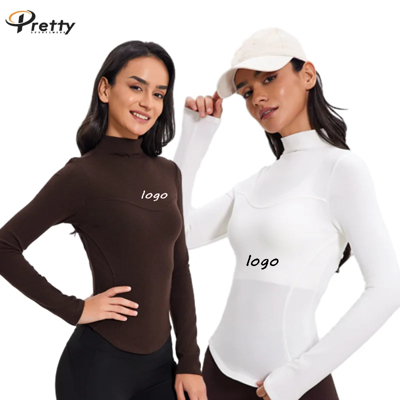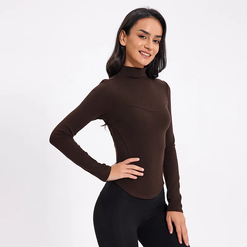 Women Slimming Custom Logo Yoga Long Sleeve Running Sports T-shirts Fleece Quick Dry Gym Sports Wear Skinny Tummy-control Top