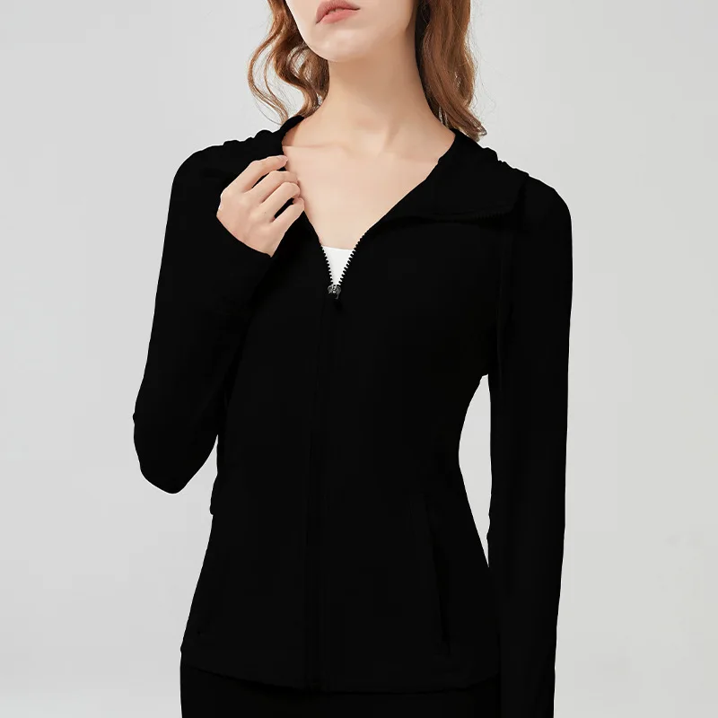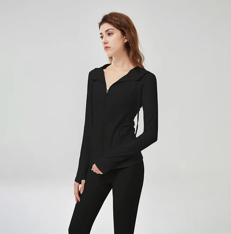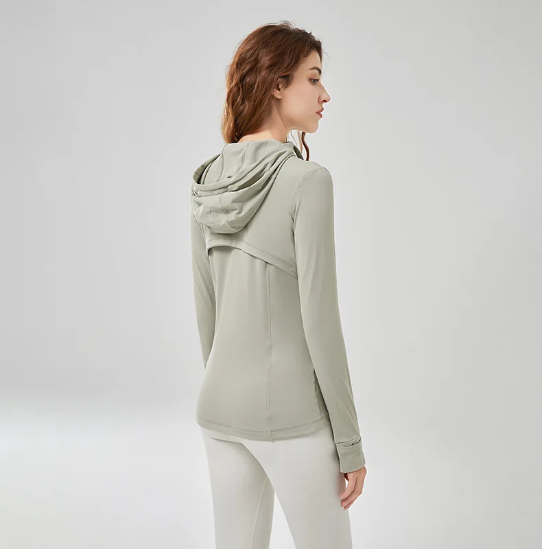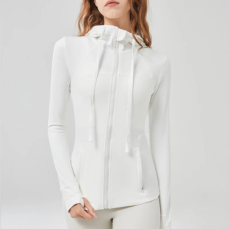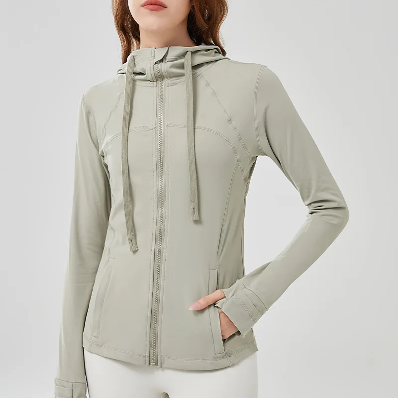 Women customizes sports jackets full zipper hooded fitness yoga coats long sleeve skinny outdoor running outwears