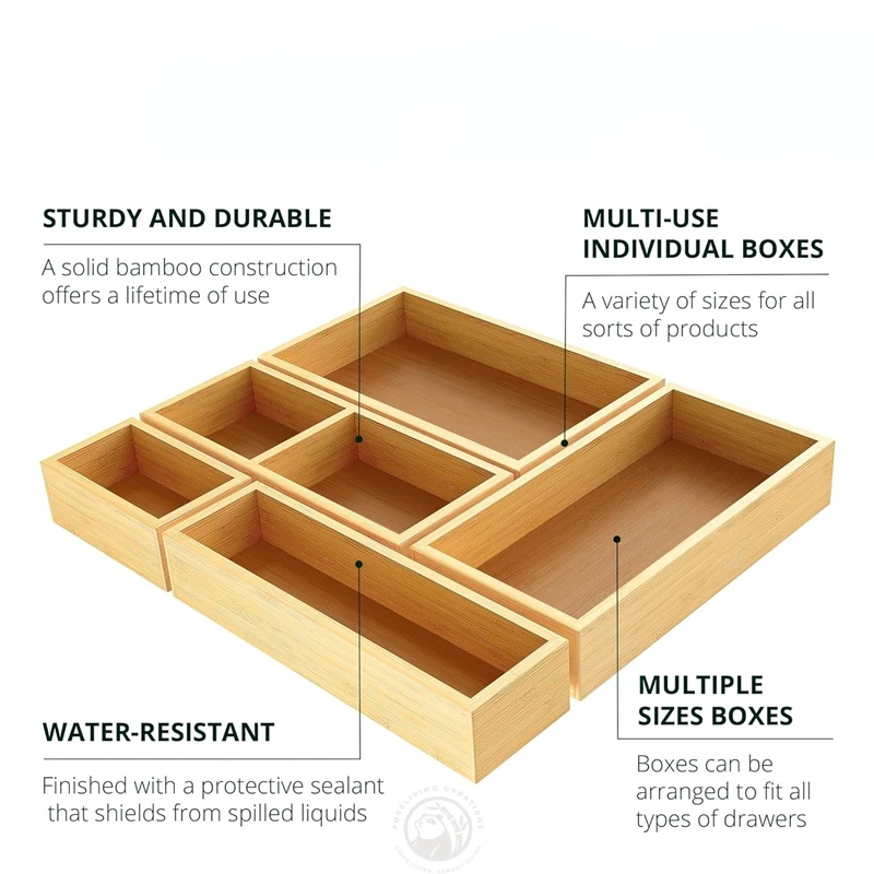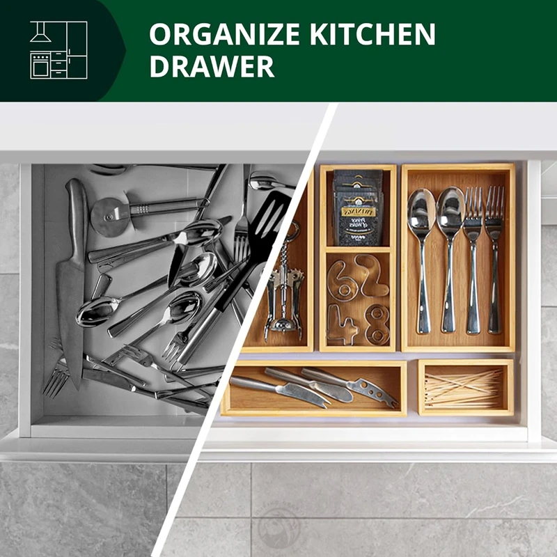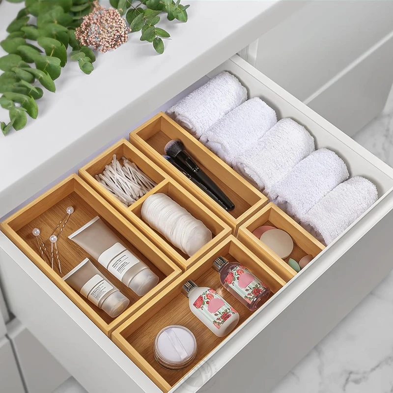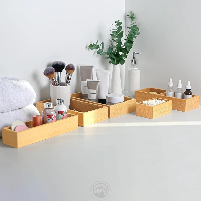 5 PCS Multi-Use Individual Bamboo Drawer Organizer Set for Kitchen Bathroom Office Desk