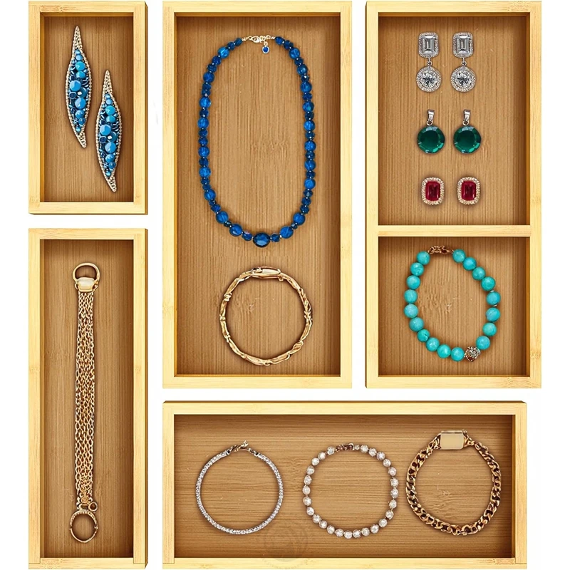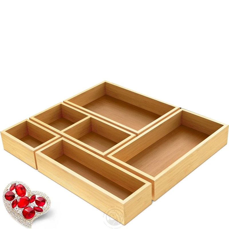 Bamboo desk Stackable Drawer Organizers make up storage box