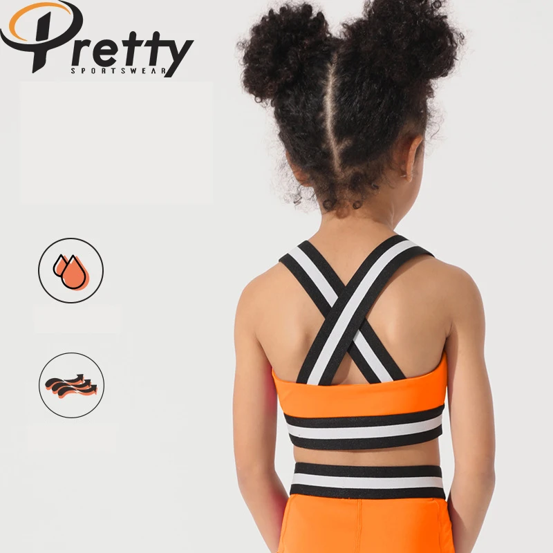 Children's yoga bras Girls fashion cross woven tape quick dry training bras high elastic skinny sports Tops fitness workout bras