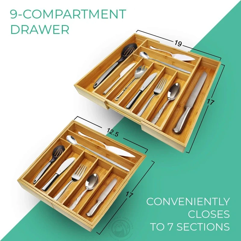 In-drawer Solid Bamboo large premium bamboo silverware organizer for Cutlery and Utensils