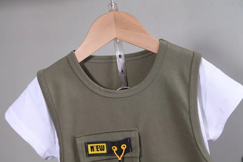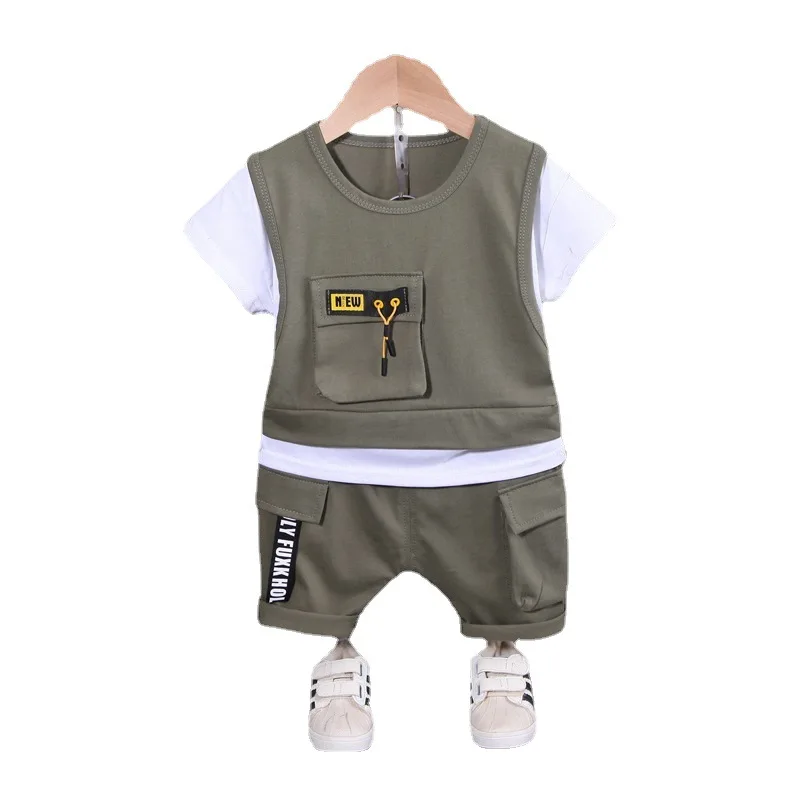 Children's stitching round neck shirt, short-sleeved shorts, sports children's suit, boys' summer clothes
