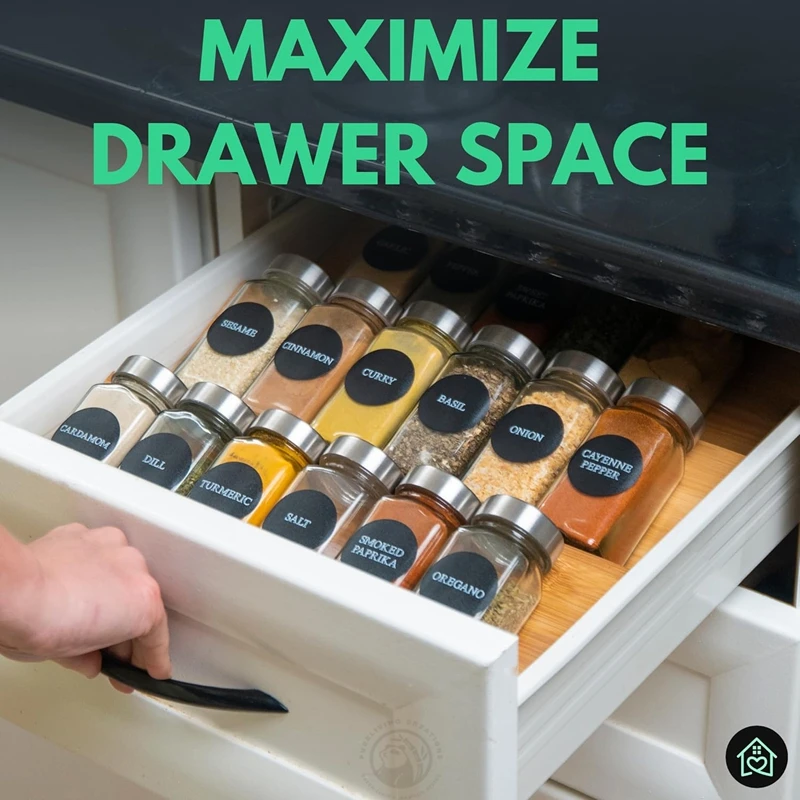 Kitchen Cabinets Storage and Organization Spice Drawer Organizer Bamboo Spice Rack Tray