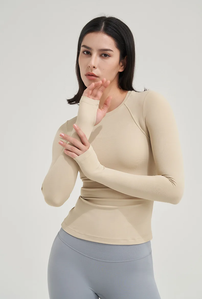 Wome's Basic Tee Workout Clothes Outdoor Slim Long Shirt Top Pilates Training Running Quick-drying Long-sleeved Casual Top