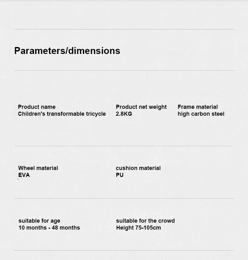 Size: | Three-wheel mode Size: 67*49*50.5cm (Pusher telescopic 82-86-90-95cm) Glide mode size: 73*27*50.5cm |