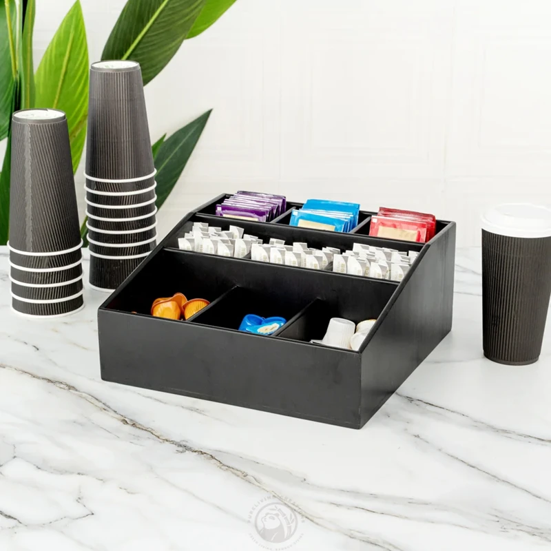 Perspex Beverage Counter Station Lucite Sugar Cup Caddy Dispenser Black Acrylic Coffee Condiment Organizer