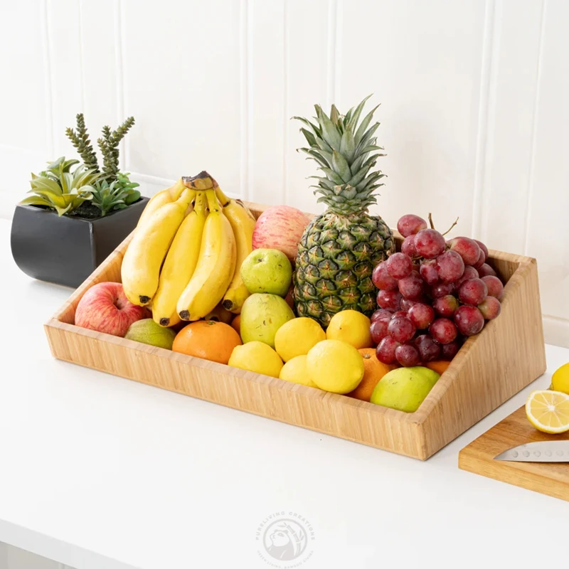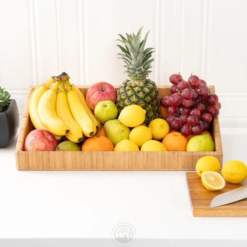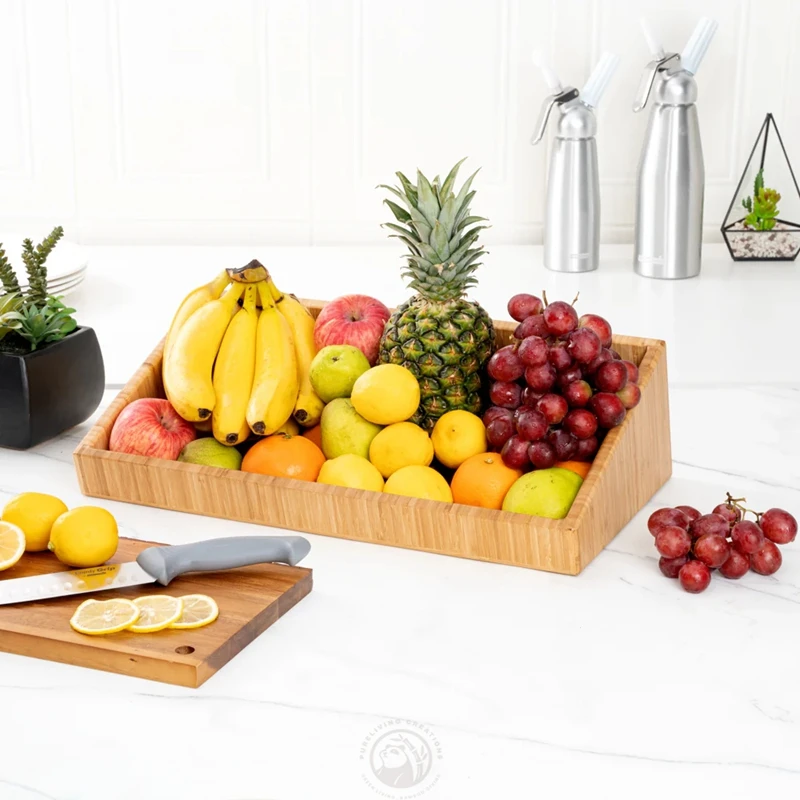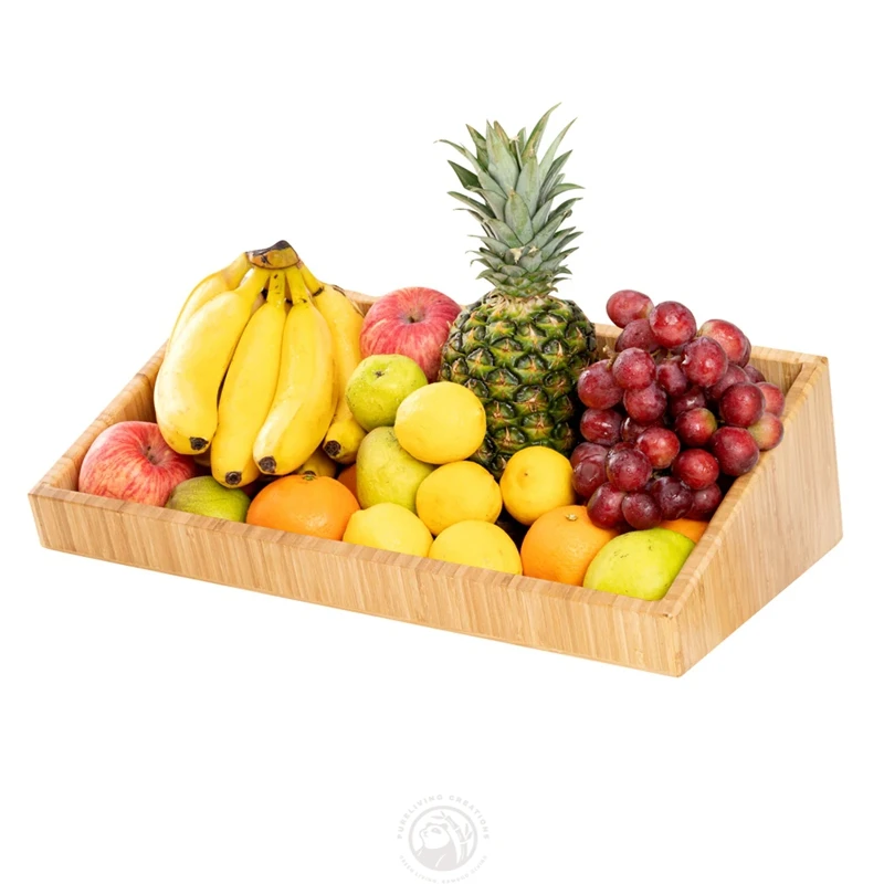 Kitchen Countertop Open Top Design Rectangle Natural Bamboo Storage Bin Rack for Vegetable