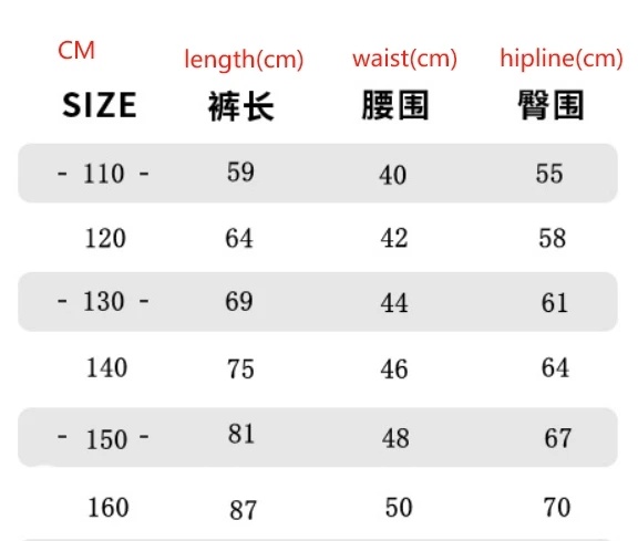 Size | 110cm, 120cm, 130cm, 140cm, 150cm,160cm | ||||||