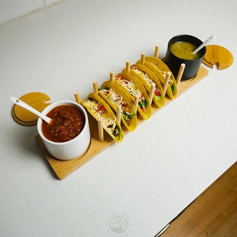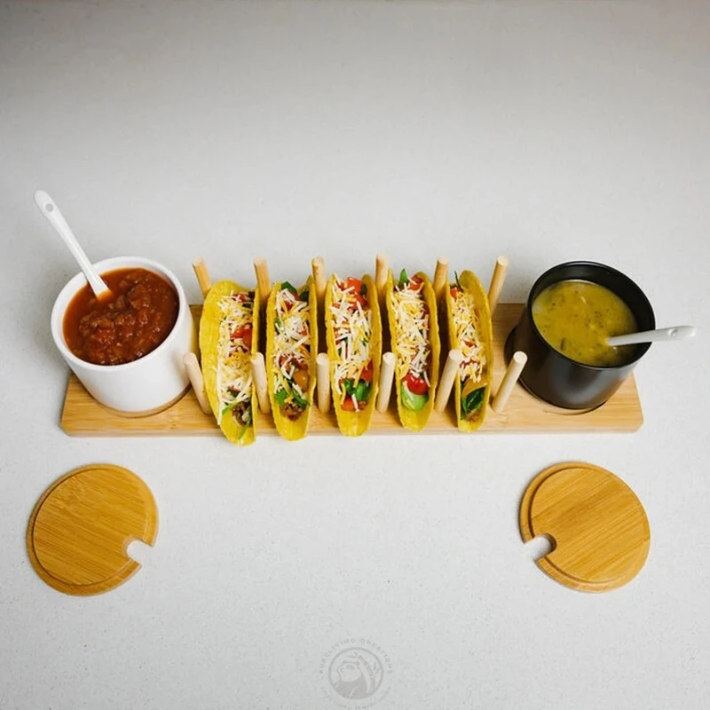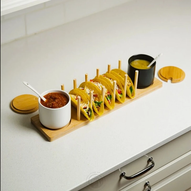 Wooden Taco Serving Holder platter Stand Set Soft & Hard Taco Shell Holder bamboo Premium Taco Tuesday Serving Tray Plates
