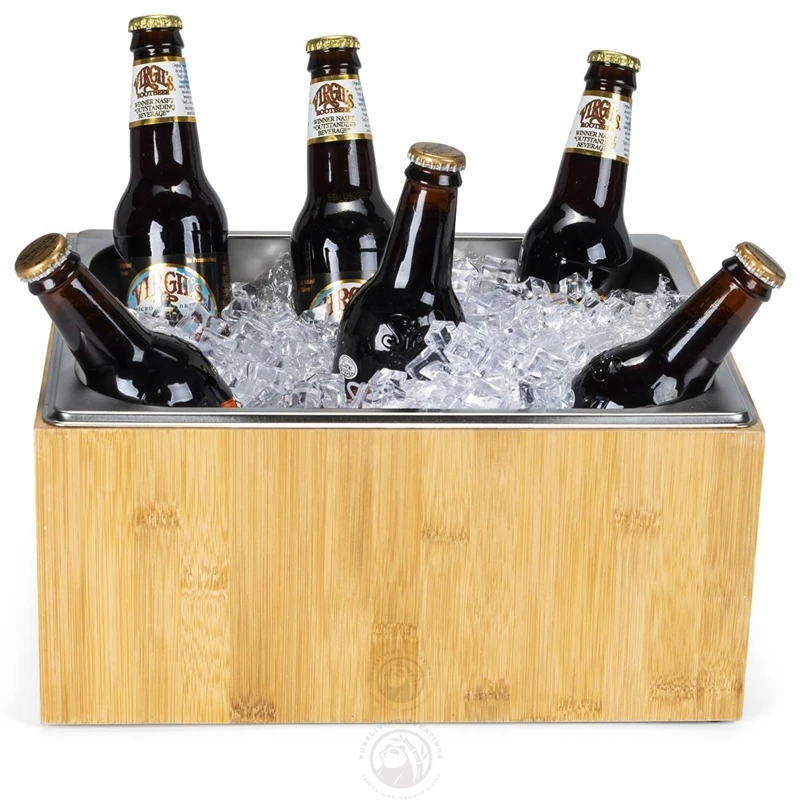 Solid Bamboo and Stainless Steel Large Capacity Ice Bucket Wine Bucket for Drinks and Parties