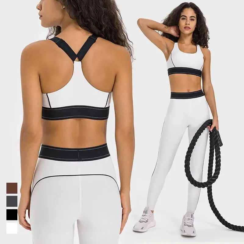 Plus Size Gym Fitness Yoga Sets 2 Piece Suit Womens Clothing Lulu Sportswear Sports Bra Tummy Control Yoga Leggings For Women