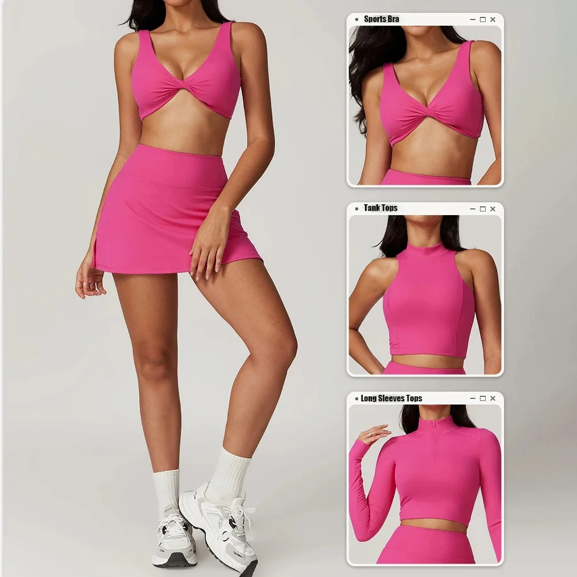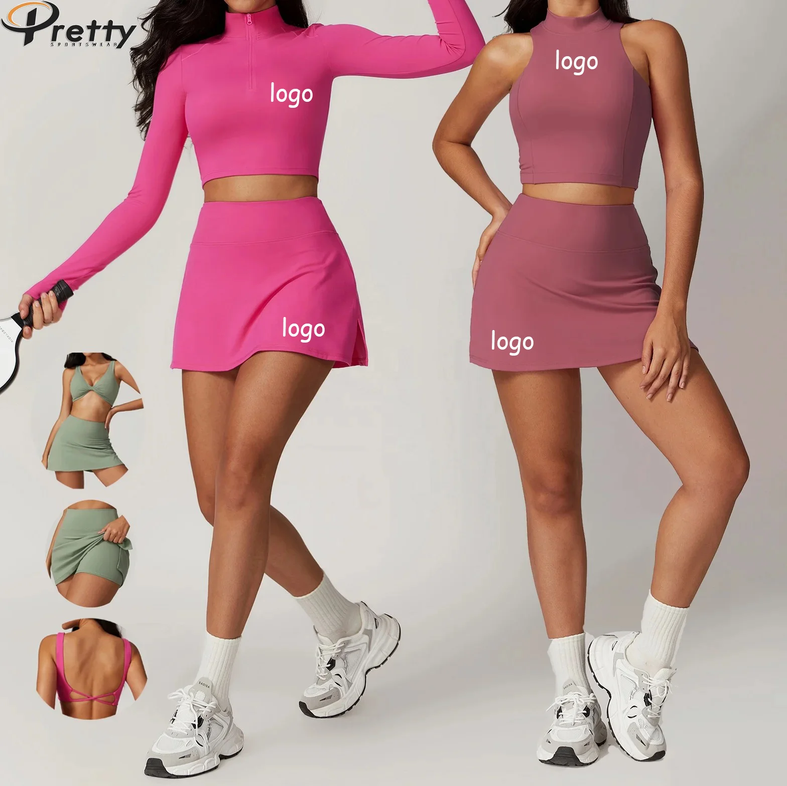 4PCS Gym Fitness Sets Workout Tennis Golf Wear Casual Sexy Tennis Skirts With Shorts High Impact Sports Bra For Women Yoga Sets